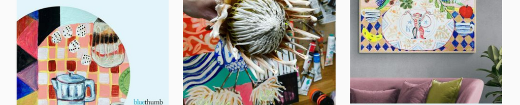 Emilie Maguin is a French visual artist based in Perth, Western Australia. She acquired her artistic training in Aix-en-Provence, and some of her influences include Henri Matisse, David Hockney, and Vanessa Bell. Her work is bold, playful, a poetic depiction of the world with a focus on strong colour and pattern. Symbolism and storytelling are the heart of each composition where layers of heavy acrylics, pastels and ink build up the textural plane of the canvas, adding to the visual interest and tactility of the paintings. Emilie’s pieces live in collections all over Australia, as well as in the U.K, Switzerland, France and Japan.