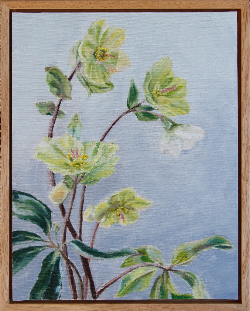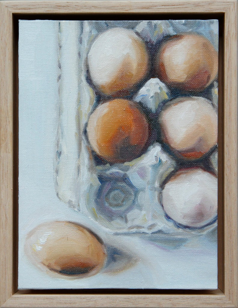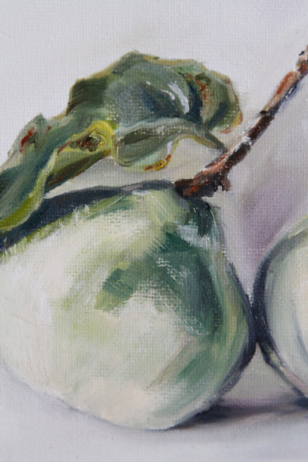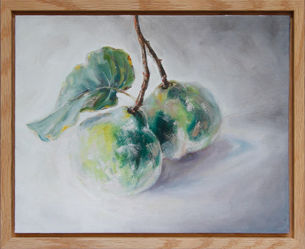Eva’s practice aims to explore these connections. Through her tender still life and landscapes, she strives to find grace in the ordinary: whether it is taking in a cloudy sky, treasuring a cup of tea in a favourite teacup, or the burgeoning promise of unripe fruit. Serene and introspective, her work in oils embraces light, shadow and movement to punctuate the transience of time.