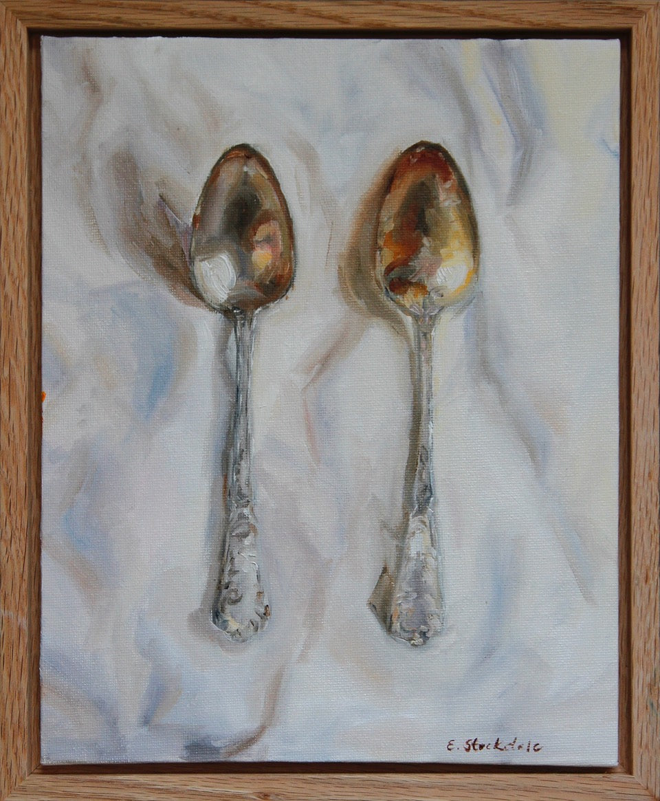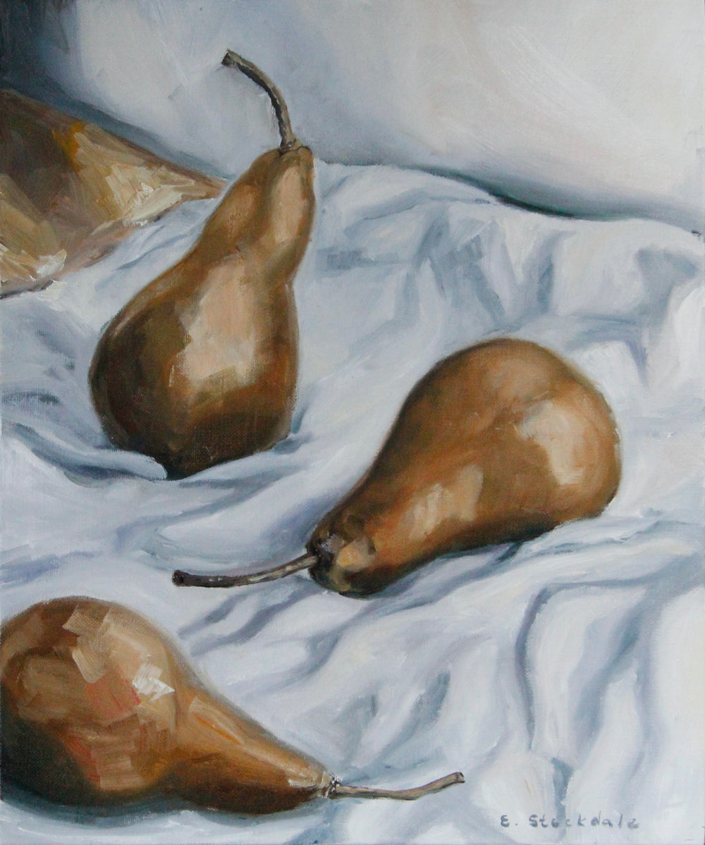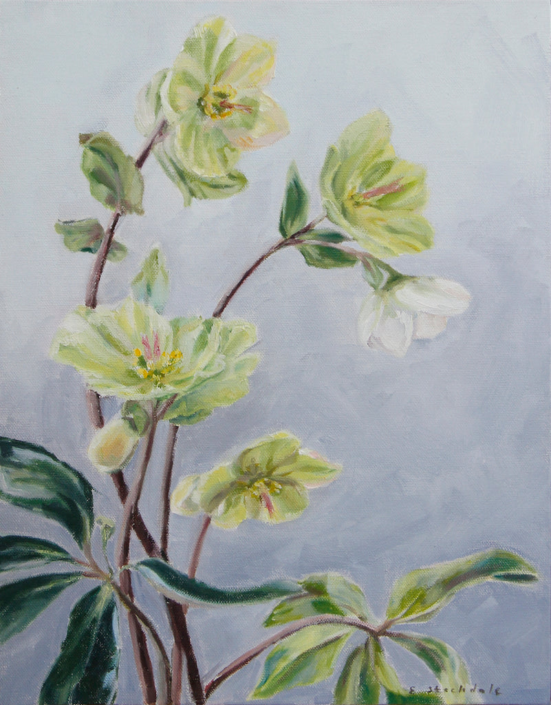 Eva’s practice aims to explore these connections. Through her tender still life and landscapes, she strives to find grace in the ordinary: whether it is taking in a cloudy sky, treasuring a cup of tea in a favourite teacup, or the burgeoning promise of unripe fruit. Serene and introspective, her work in oils embraces light, shadow and movement to punctuate the transience of time.