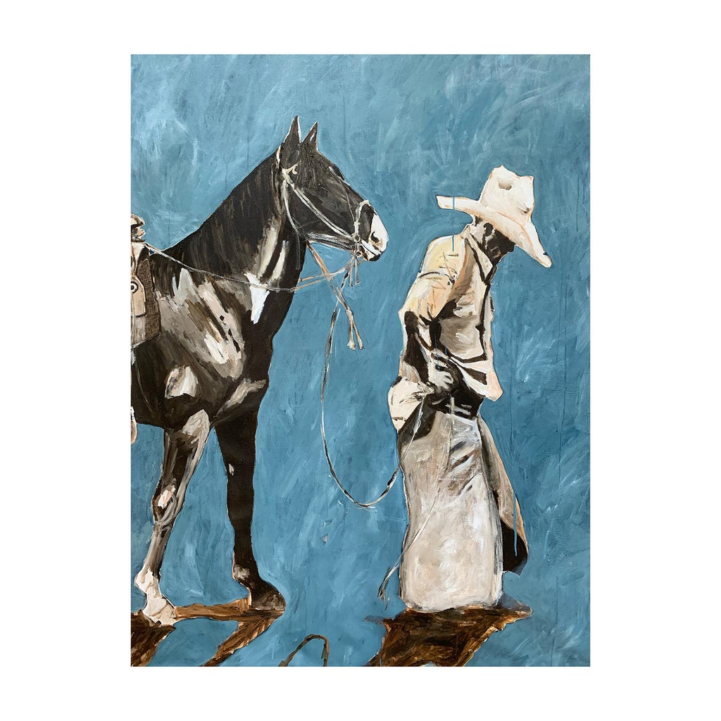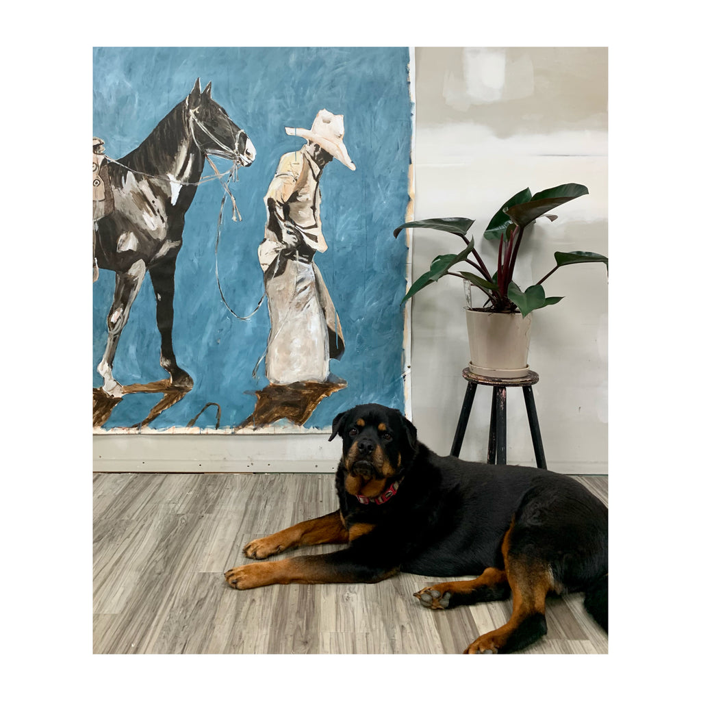 I spend my time working in a studio garage, occasionally with a toddler or two and each session starting with my guitar. I'm sure that this started as procrastination at its finest but no less an important routine for me now, and eases me into many hours of painting.