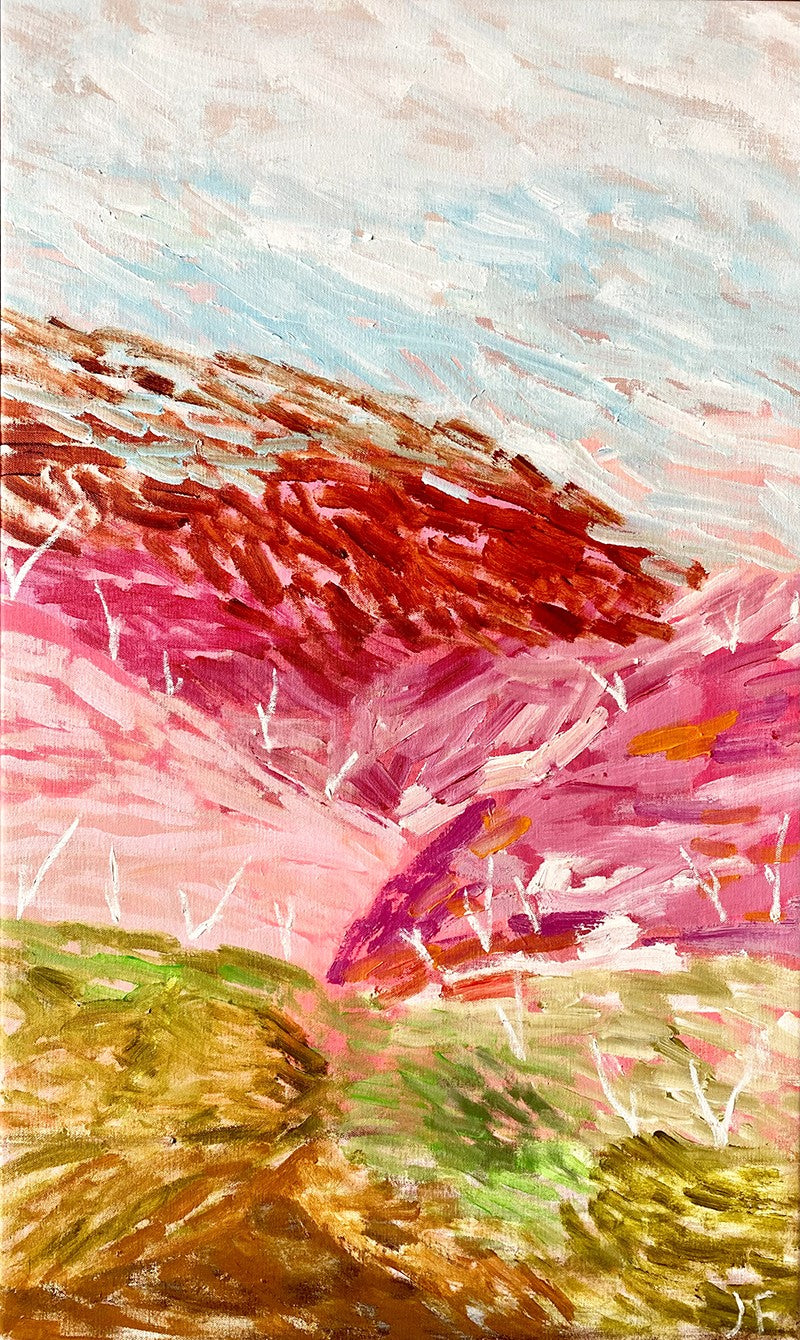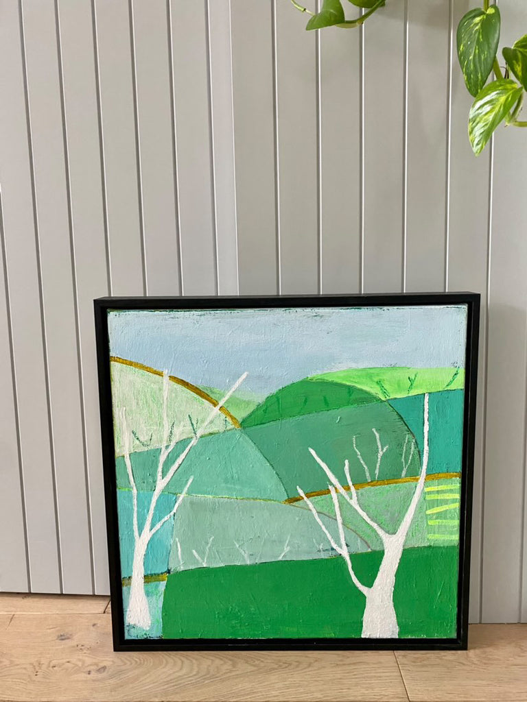 Many of Janey’s paintings represent connectedness, celebration and the power of nature. Her mind often escapes to another place while painting and she hopes that my work can be meaningful to anyone, anywhere in the world and that it takes the viewer to places of happiness and simplicity. Janey paints with acrylic paint in her home studio, meaning you are supporting the smallest of small businesses when you purchase her art.