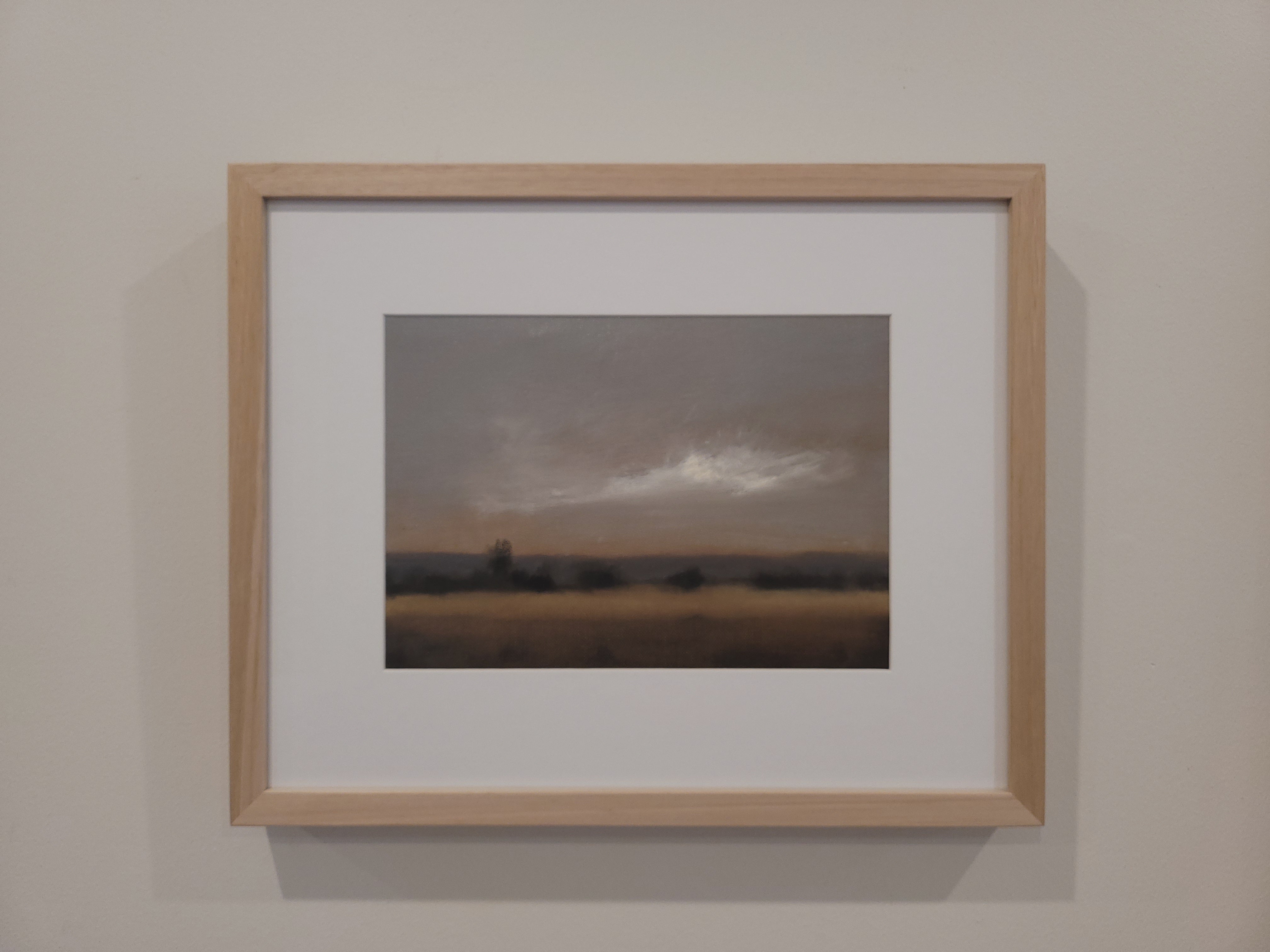 28 x 38cm. Oil on cotton duck canvas paper, framed in natural oak behind Artglass.
