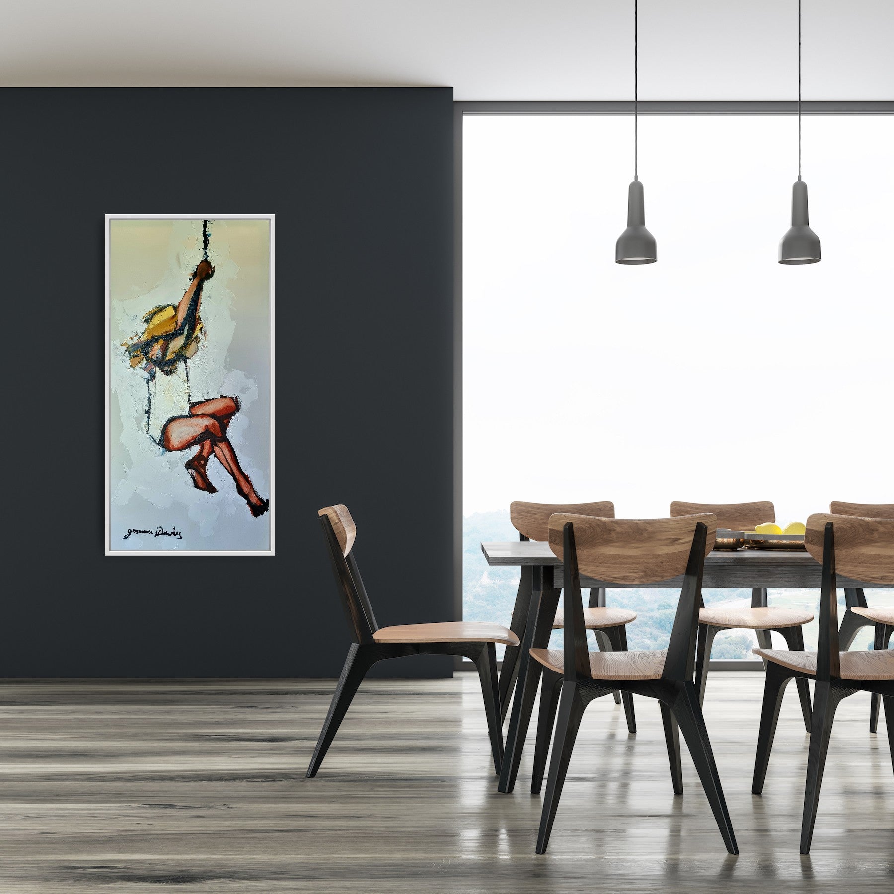 65 x 125 cm oil on canvas, framed in timber box frame.