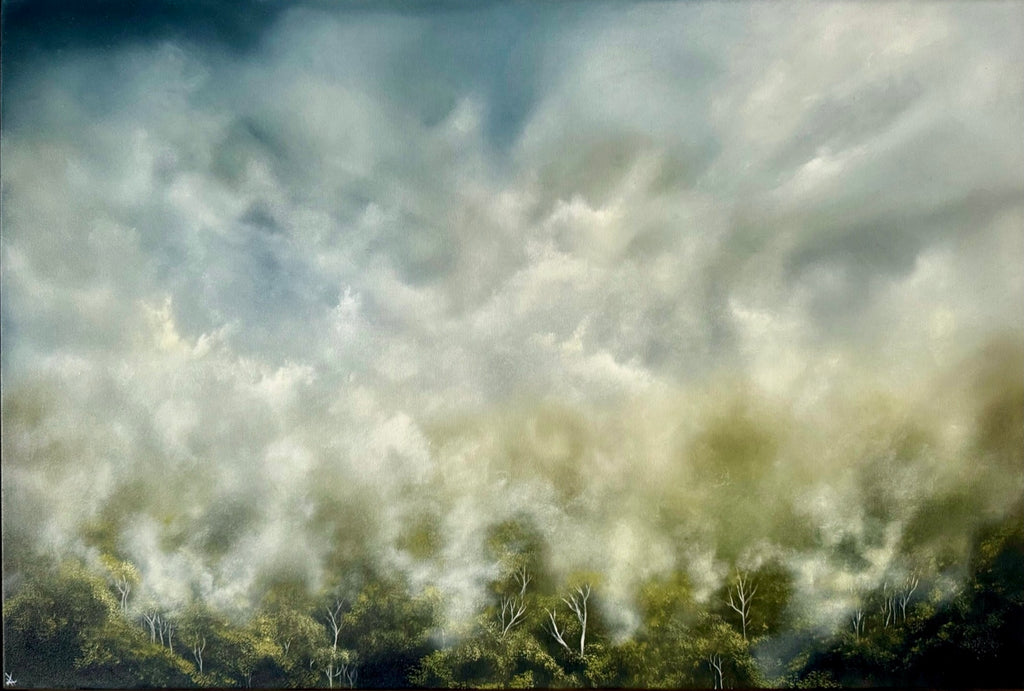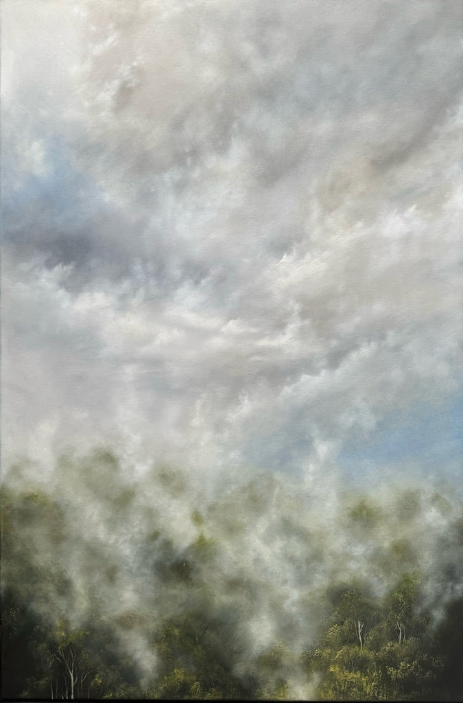 Raised on the outskirts of Melbourne’s north eastern suburbs, Kelly discovered oil paints at the conclusion of high school. Opting to develop her style through practice and repetition, she painted intermittently while working a range of retail, administration and self-employment positions. After losing her business during the COVID-19 pandemic, she began painting more steadily than she had previously, and it soon became her primary line of work.