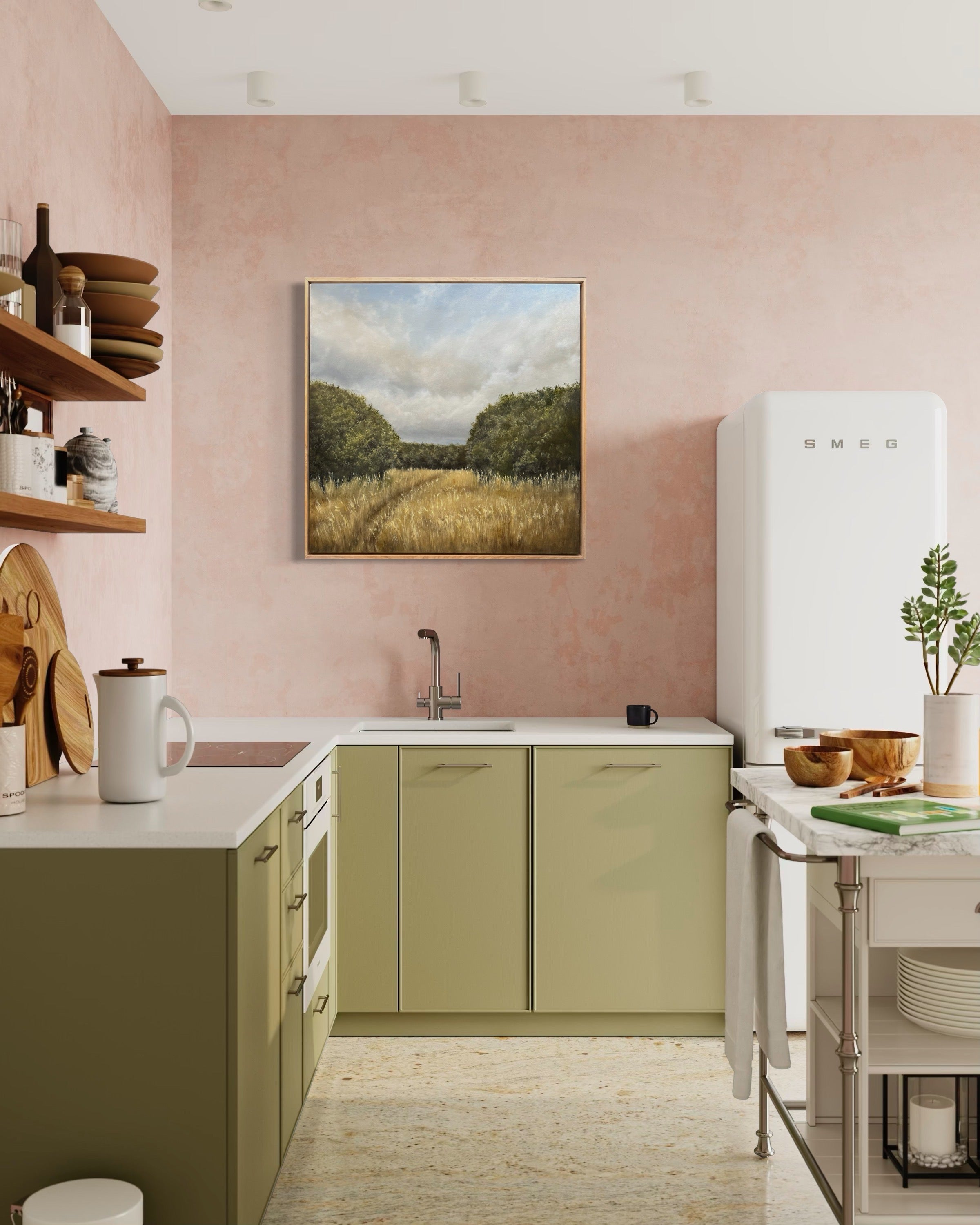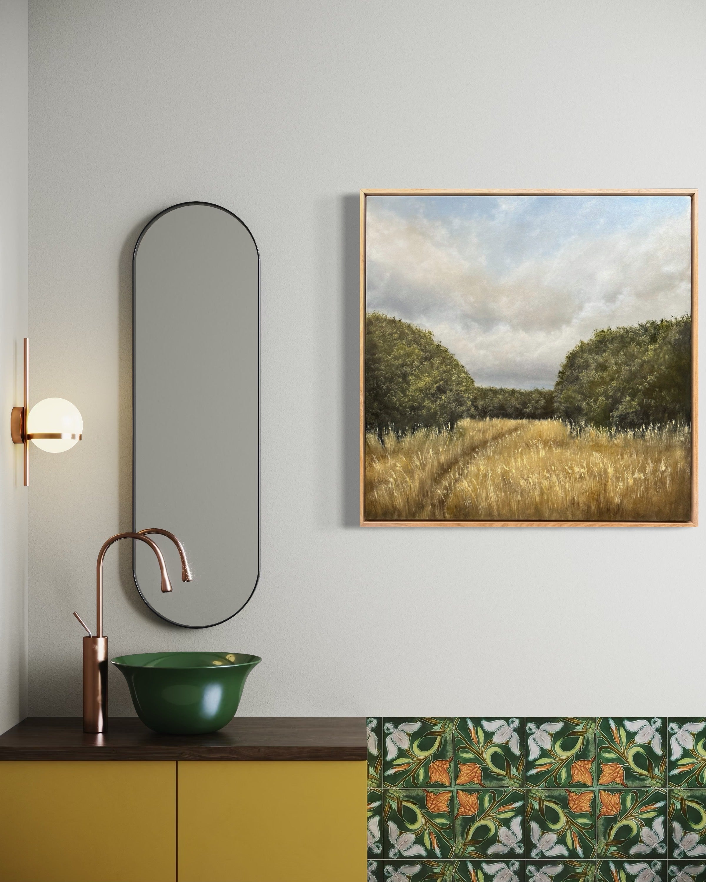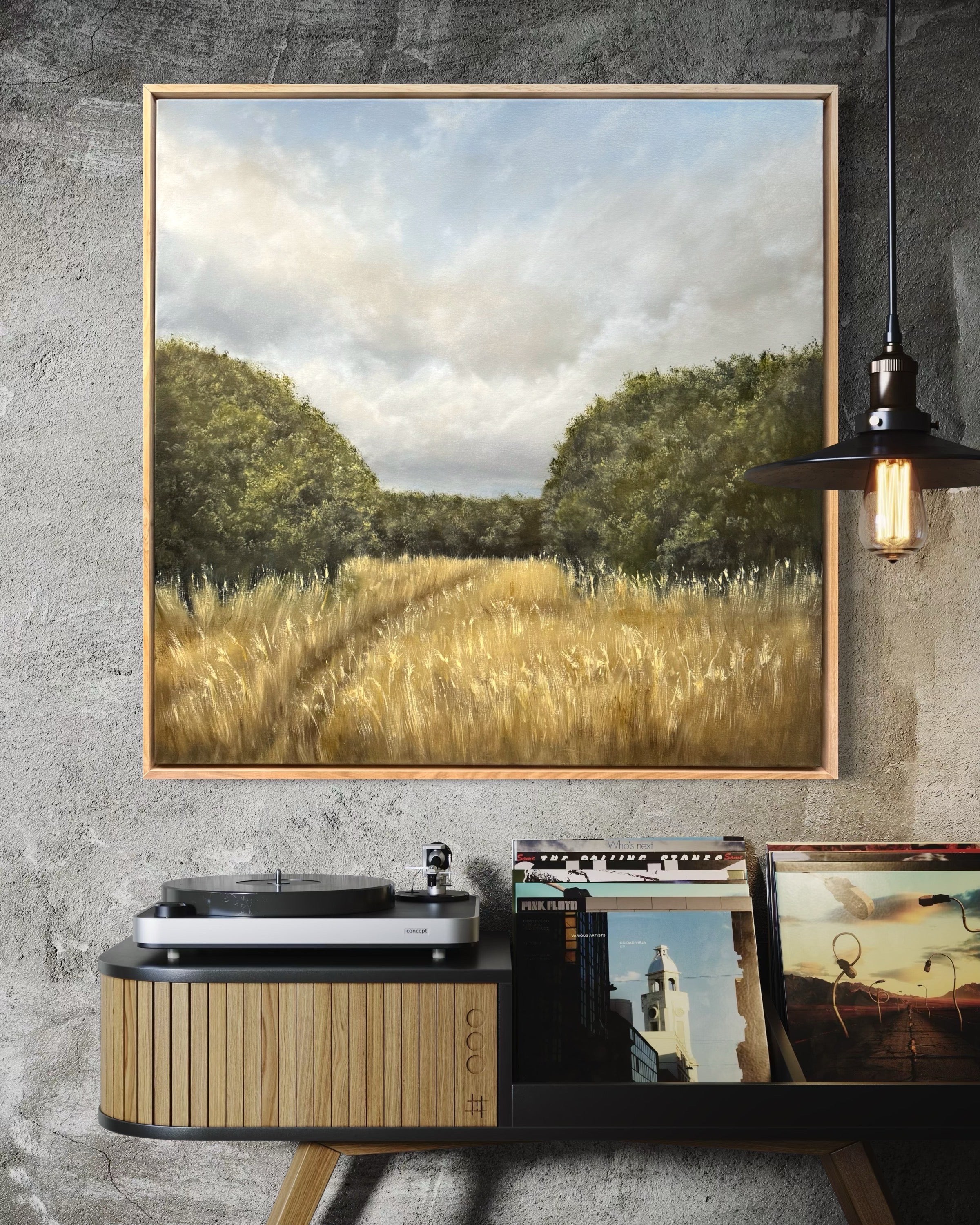 94 x 94cm. Oil on canvas, framed in raw oak.