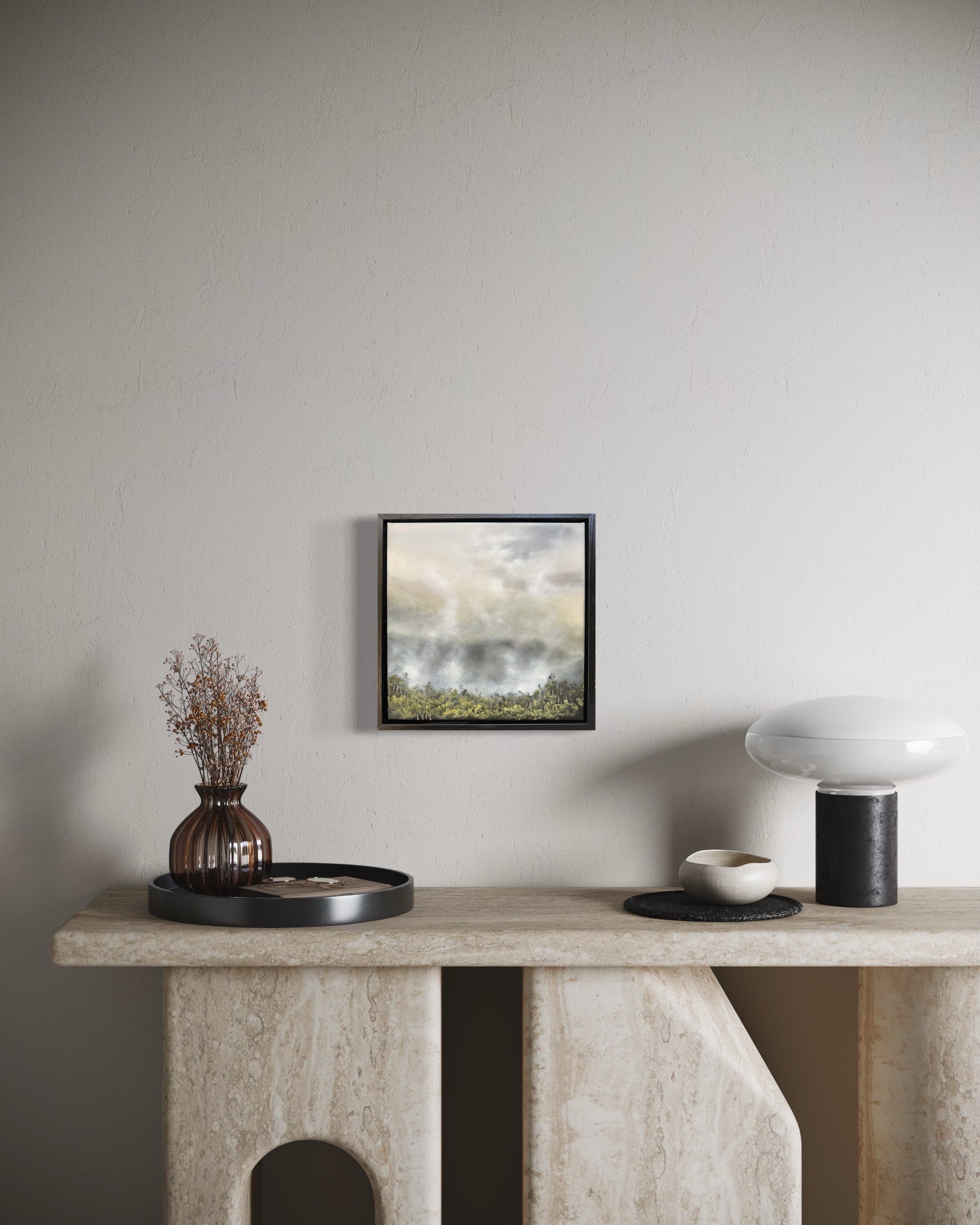 33 x 33cm. Oil on canvas, framed in black oak.