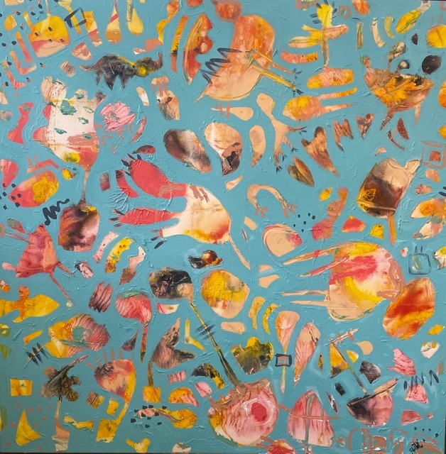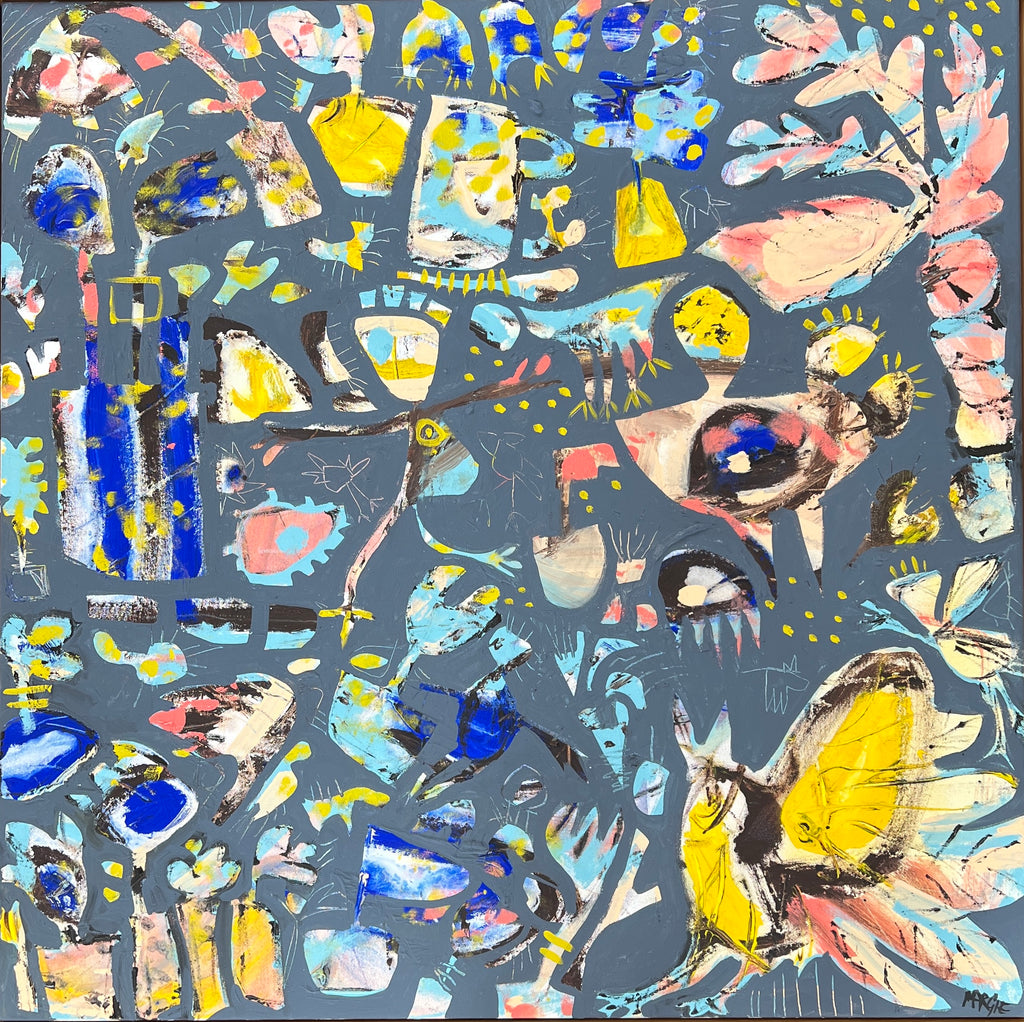 Margaret's sources of inspiration are diverse, but she has recently turned her attention to the microscopic world found in the waterways and nature that surround us, as well as the sounds and conversations of birds. She also draws inspiration from spending time with friends, the changing seasons, and the impact of COVID-19 on her life, which has led her to explore themes of home life, empty nesting, and relationships in her recent works.