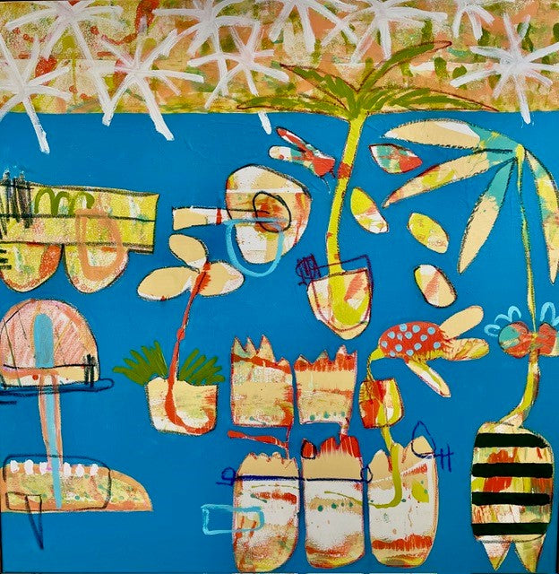 In addition to her painting, Margaret has also ventured into working with different mediums and creating clay pots that complement her artistic vision. She has a background in Fine Art and has both practiced and taught in this field, as well as exploring fashion design. Margaret is based in Ballarat and also has a studio located in Breamlea.