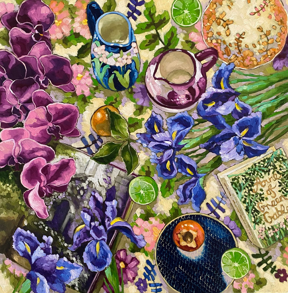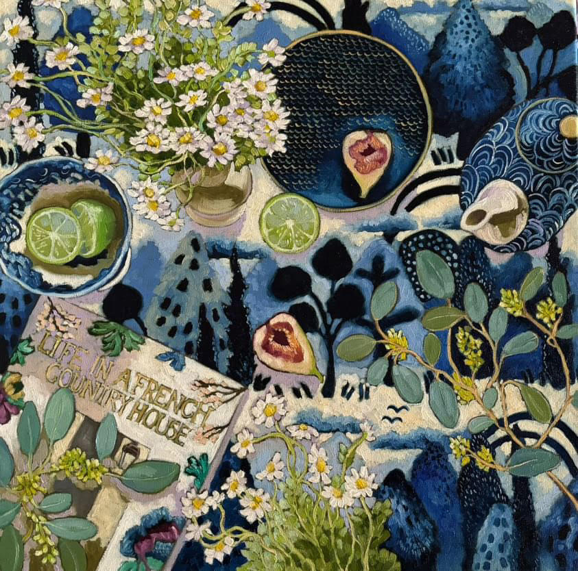 Inspiration comes readily for Michelle through the work of her favourite artists (Degas, Bonnard, Vuillard, Hopper, Vermeer, Matisse, Van Gogh, Gaugin, just to name a few!), particularly the colour in their work. “Colour brings joy, peace and happiness; colour is my everything. Oil on canvas is my preferred medium. It is thick and lovely, and I am able to work texturally and create some amazing colours that sing!” Flowers are also a constant source of inspiration and Michelle works only from fresh flowers that are in season. “I am always amazed at nature and how beautiful a flower or leaf can be.”