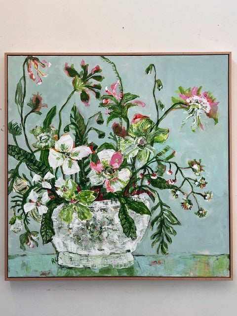 103 x 103cm. Acrylic on canvas, framed in Oak.