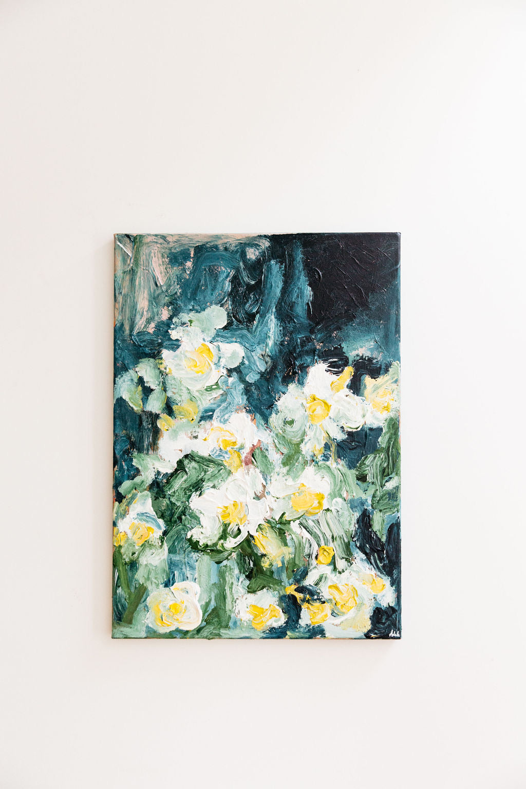 61 x 86cm. Acrylic on canvas, framed in raw oak