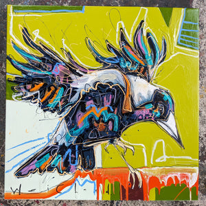 79 x 79cm. Oil stick and spray paint on canvas, framed in Oak.