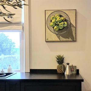 54 x 54cm. Oil on stretched canvas, framed in oak.