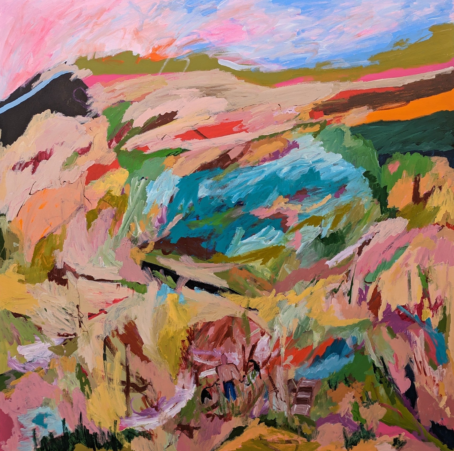 120 x 120cm. Acrylic on canvas, framed in Oak.