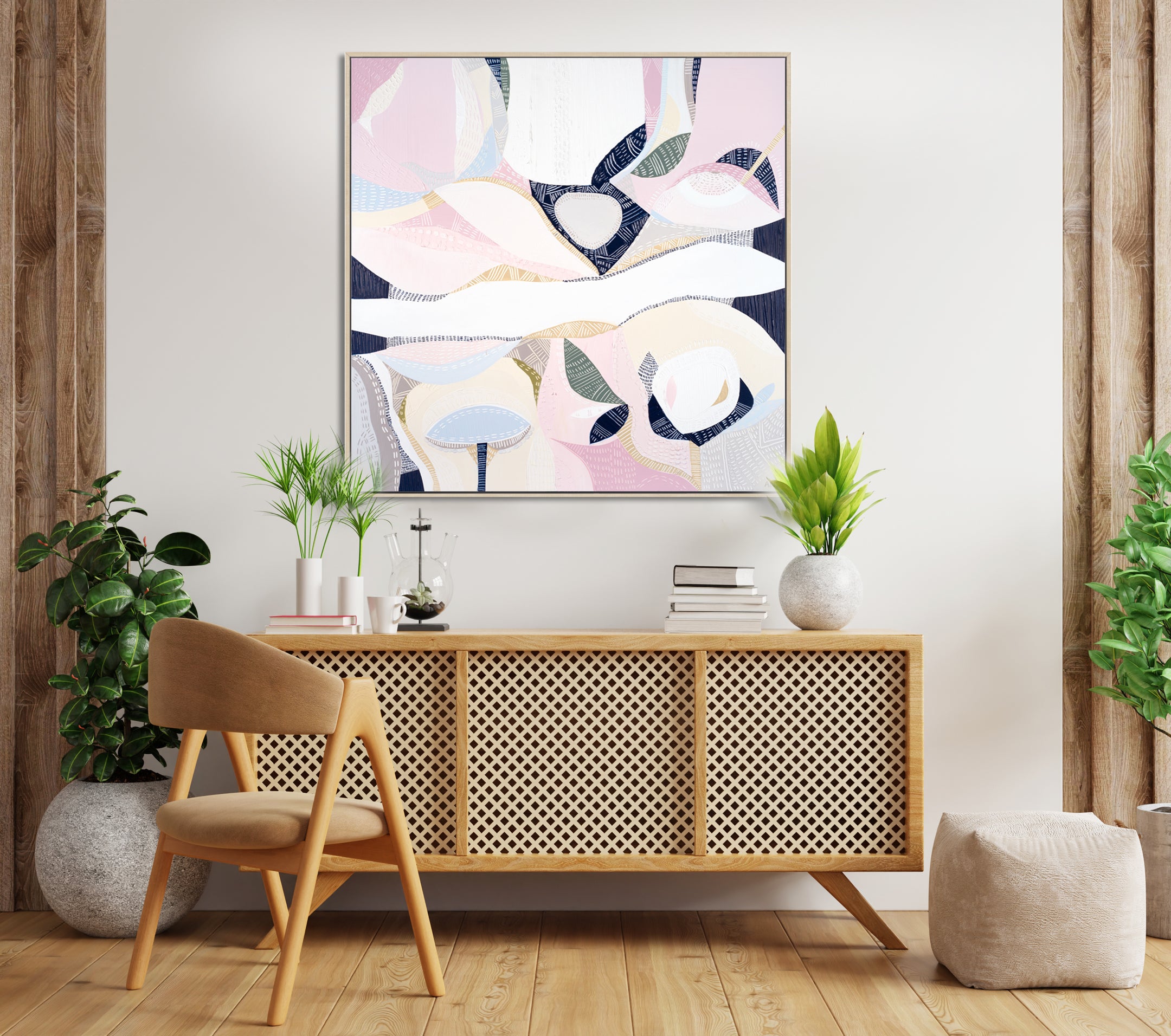 104 x 104cm. Acrylic on canvas, in Tasmanian oak float frame