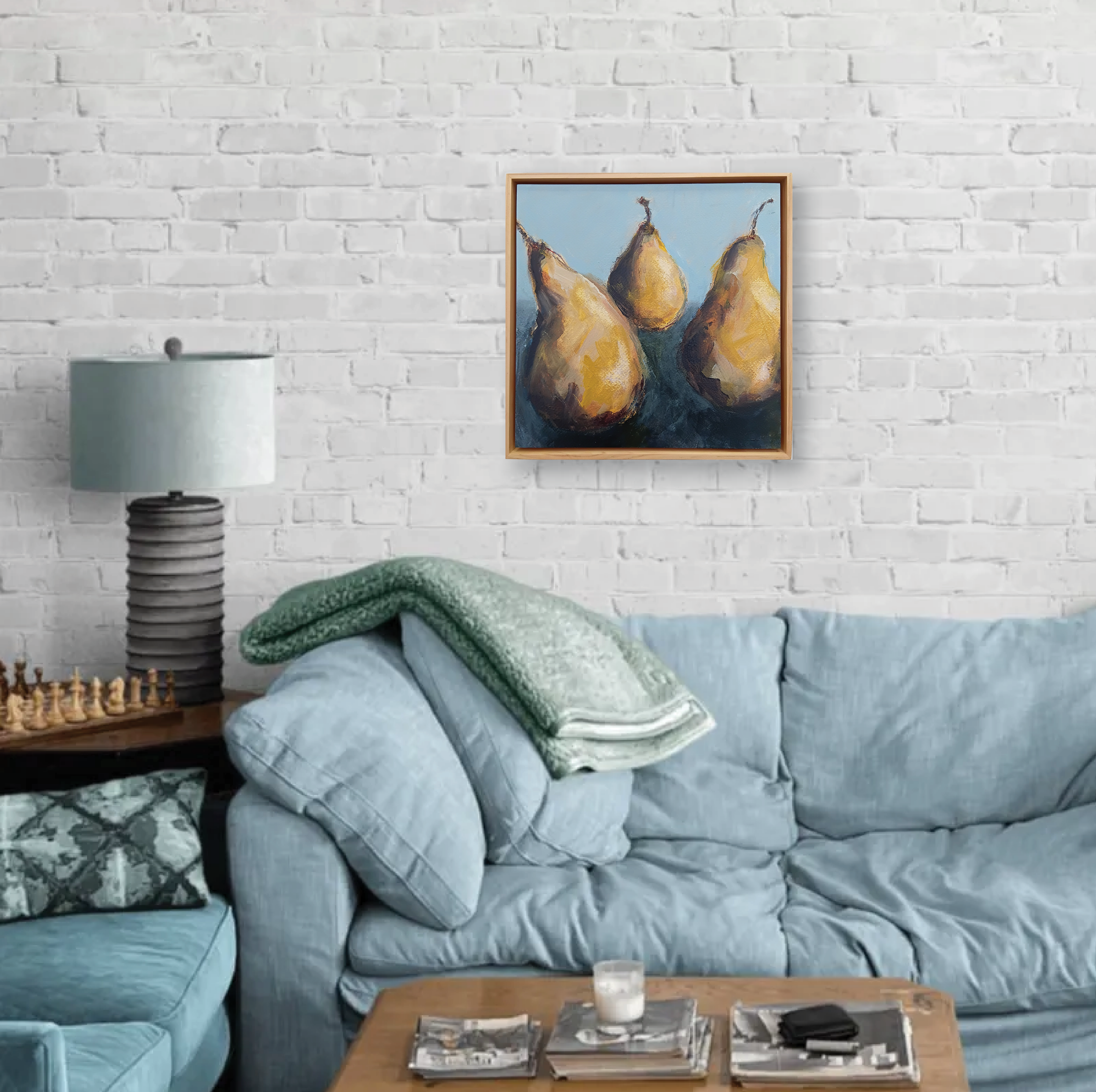 32.5 x 32.5cm. Acrylic, mixed media, paper bonded-to a cradled board, framed in pine.
