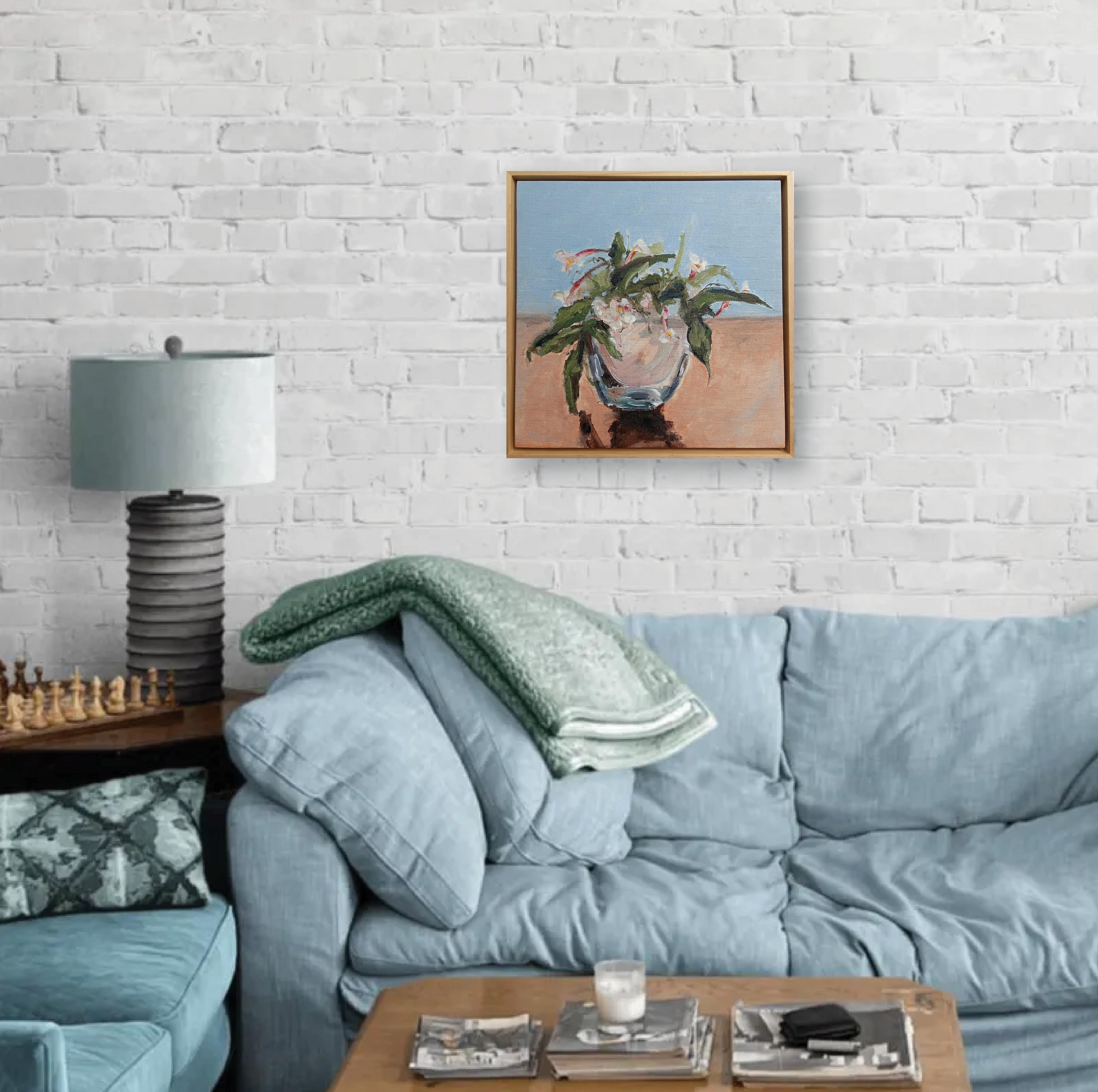 32.5 x 32.5cm. Acrylic on canvas, framed in pine.