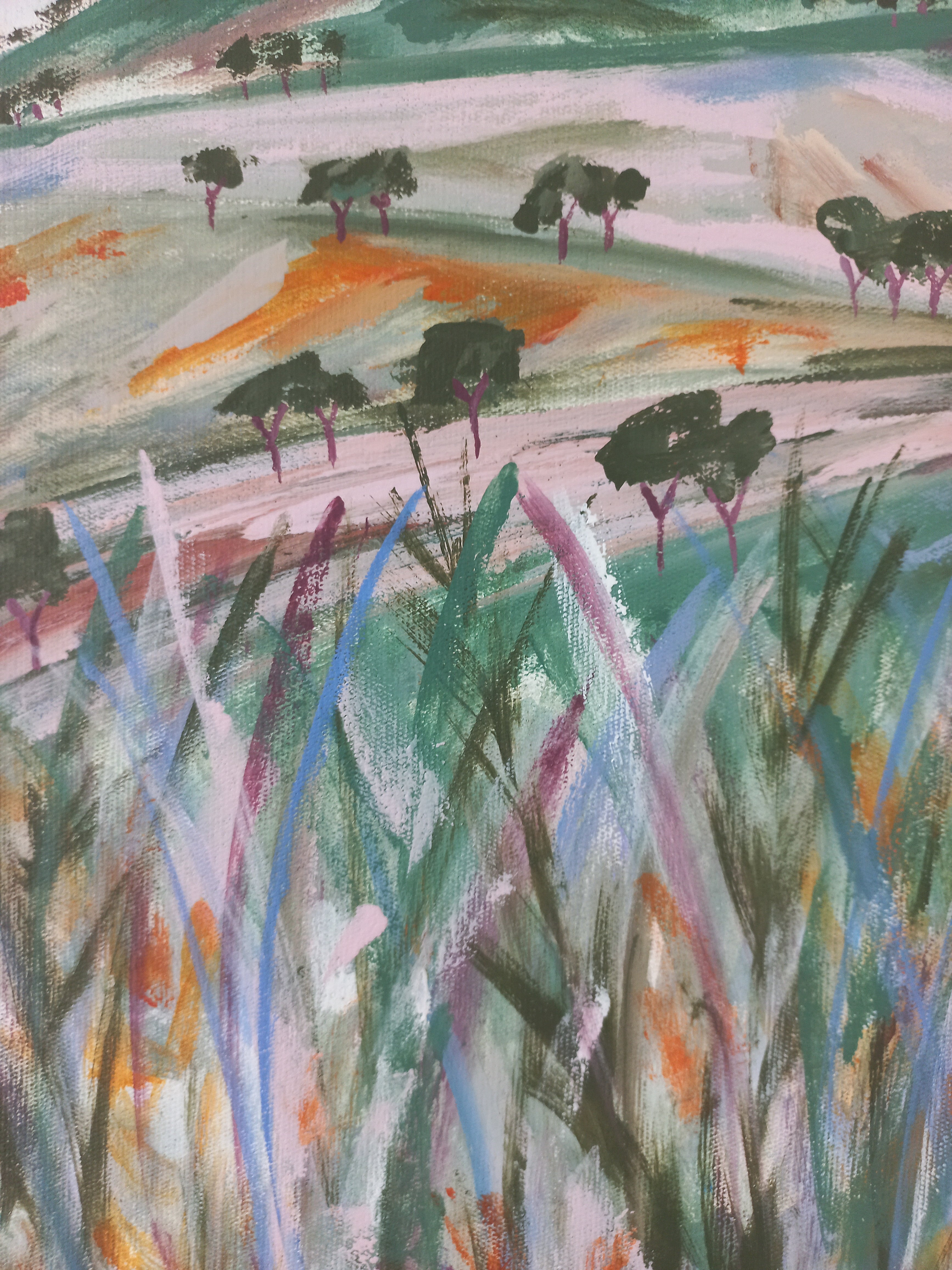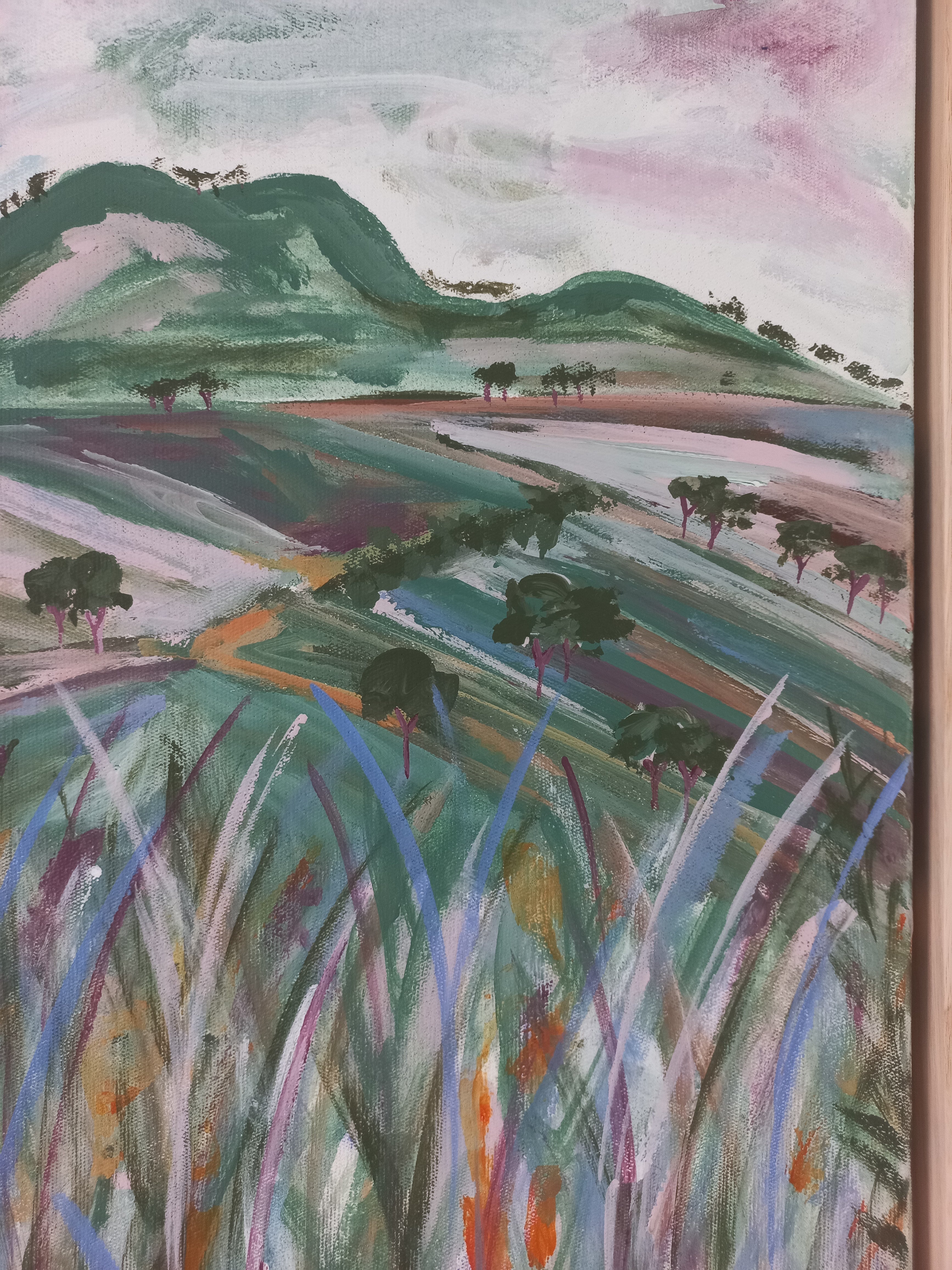 43 x 43cm. Acrylic on canvas, framed in Tasmanian Oak