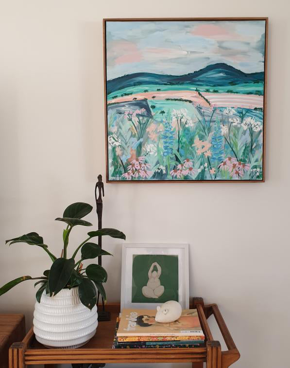 63 x 63cm. Acrylic on canvas, framed in Tasmanian Oak