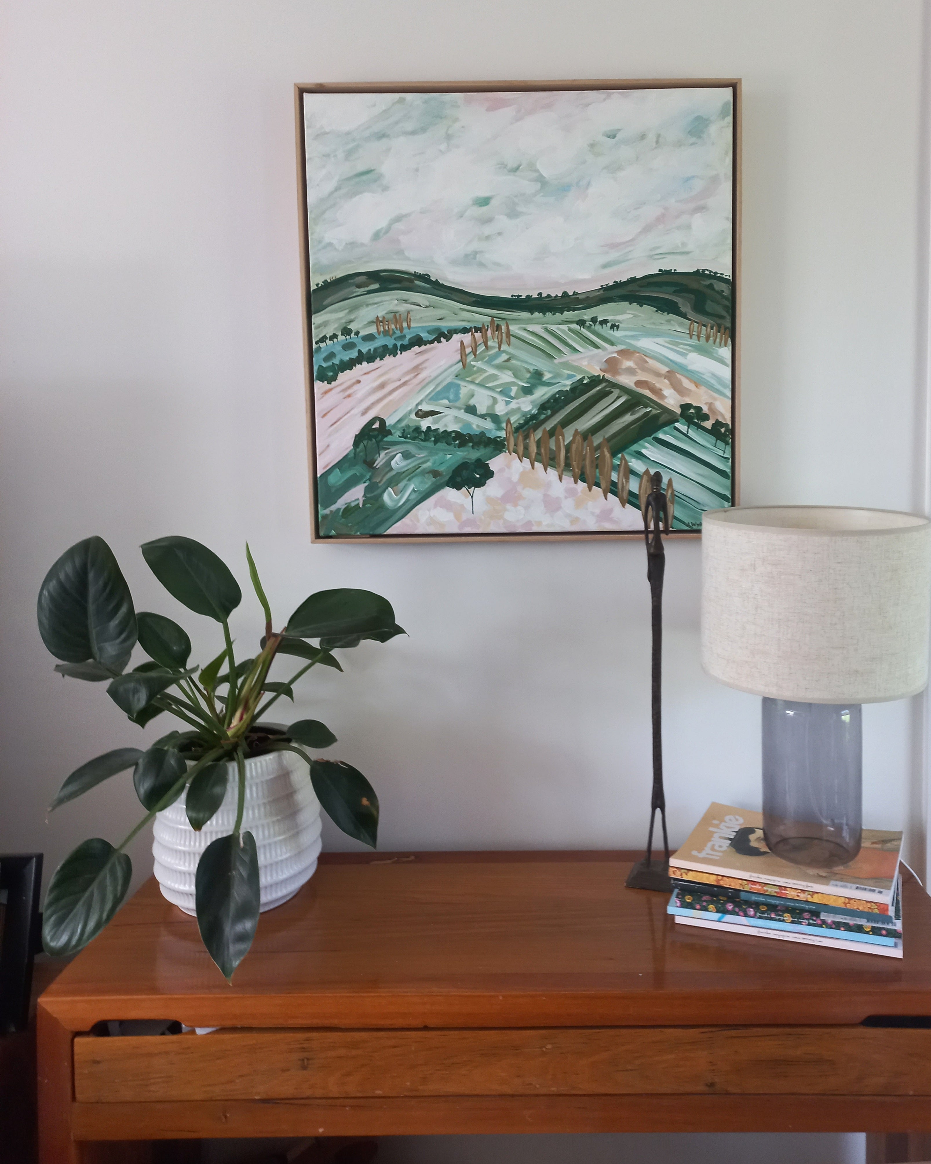 63.5 x 63.5cm. Acrylic on canvas, framed in Tasmanian Oak