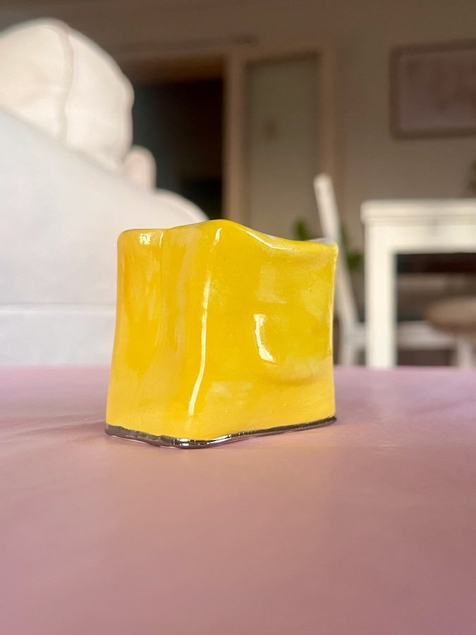 Approximately 5cmH. Glazed ceramic and hand-squished.