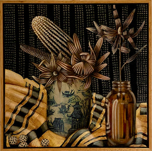 43 x 43cm Acrylic on canvas. Framed in Tasmanian Oak