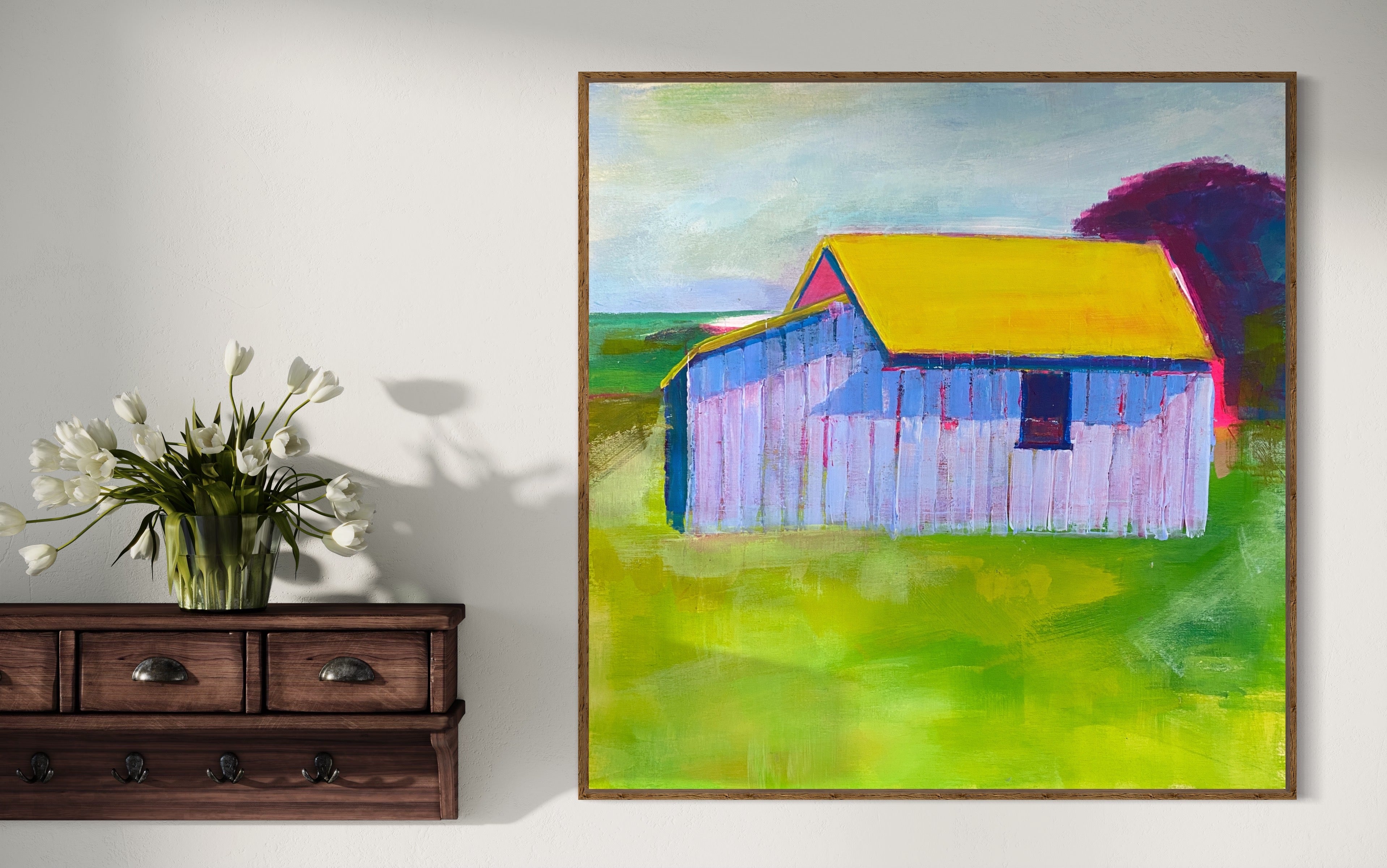 33 x 33cm, acrylic on cradled birch panel, framed in Tasmanian Oak
