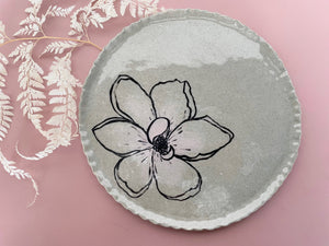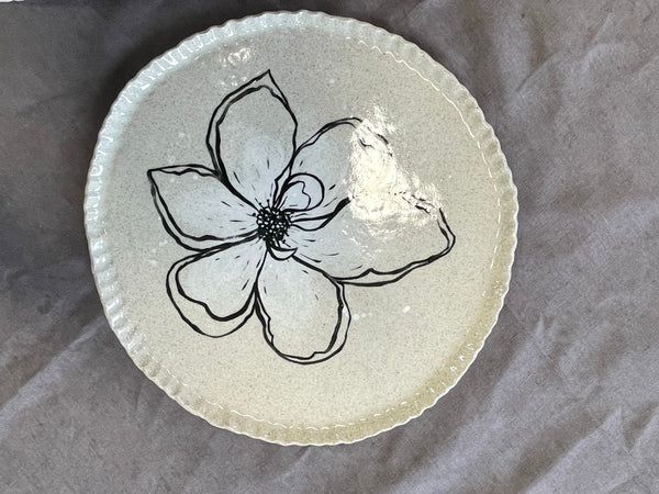 The hand pinched rim features a sweet spot design around the edge in a complimentary colour, a subtle feature for the detail oriented which really comes together when multiple plates are stacked together