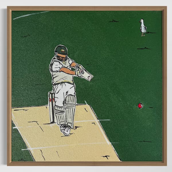 23.5 x 23.5cm. Acrylic on canvas, framed in raw timber.