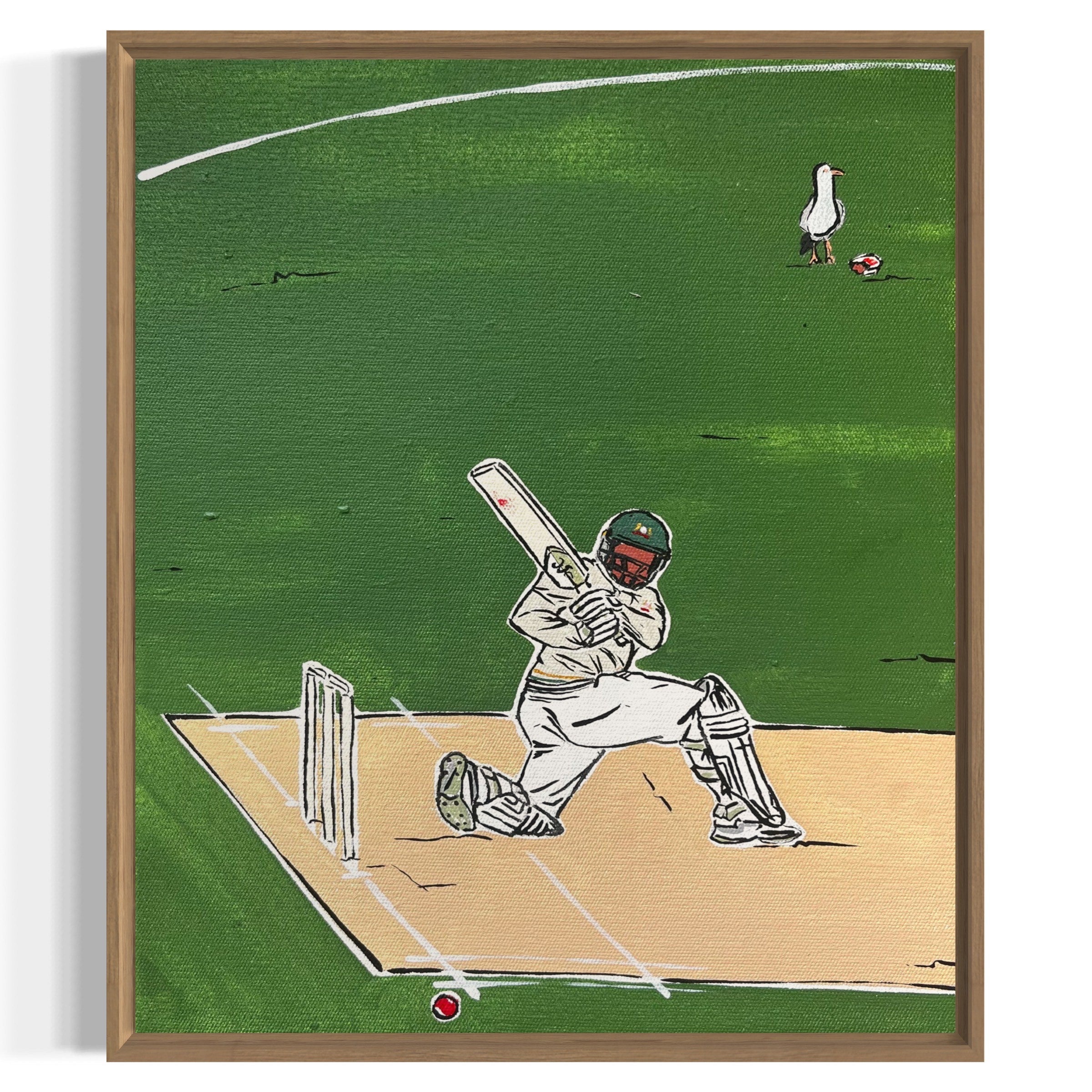 27.5 x 23.5cm. Acrylic on stretched canvas, framed in raw timber.