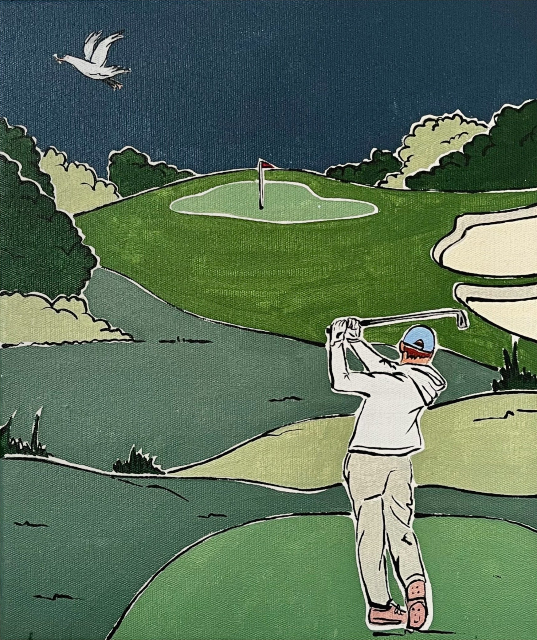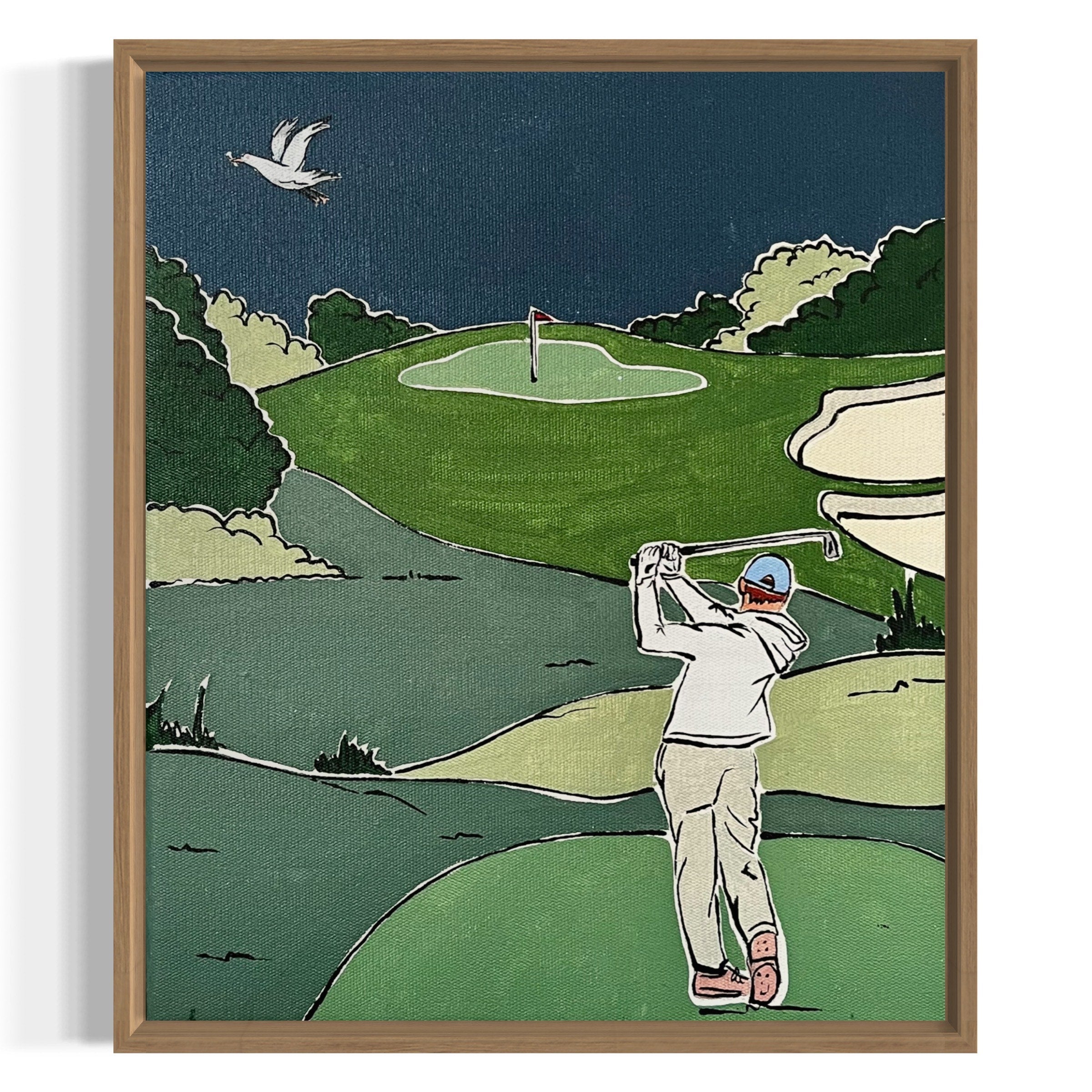 27.5 x 23.5cm. Acrylic on stretched canvas, framed in raw timber.
