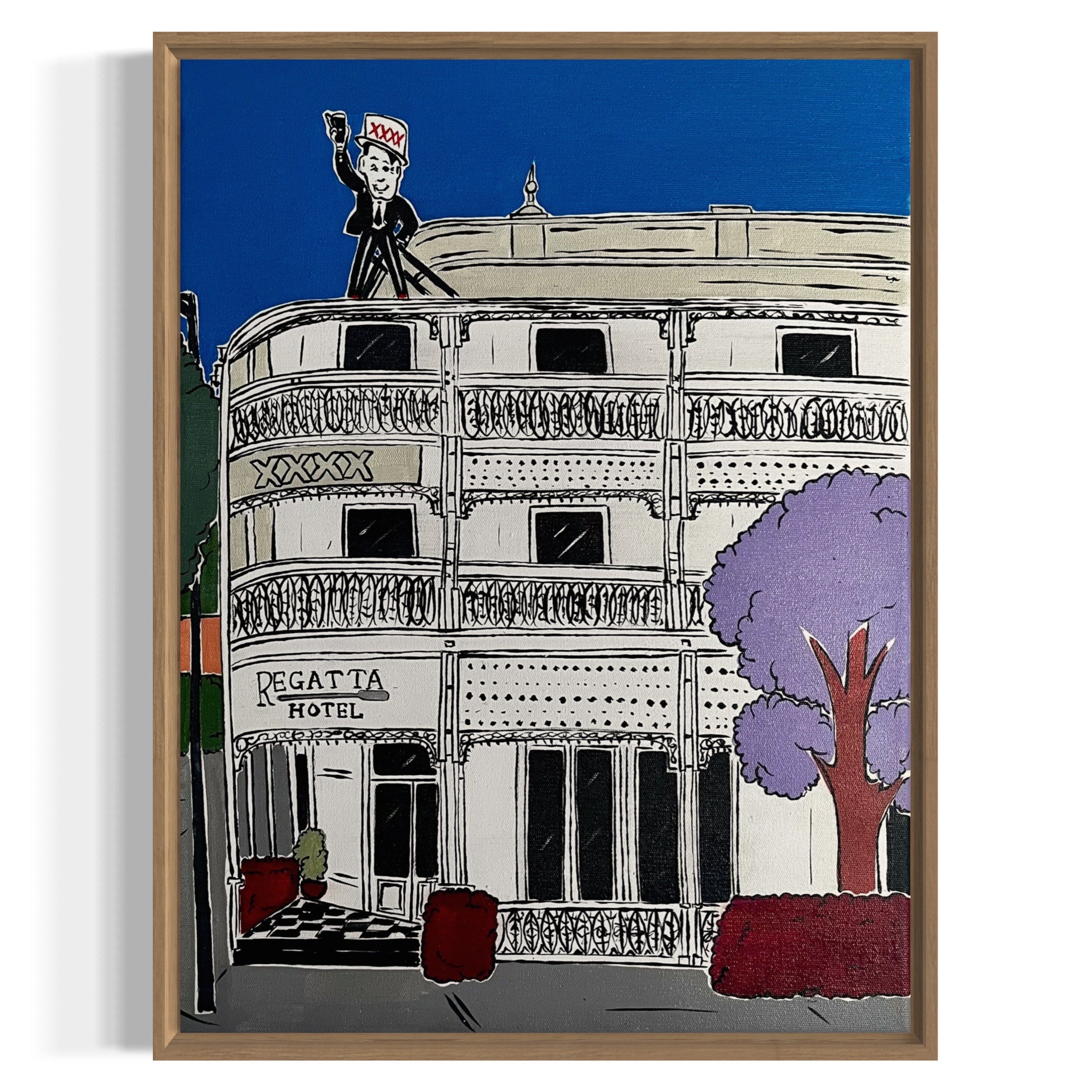 43 x 33cm. Acrylic on stretched canvas, framed in raw timber.