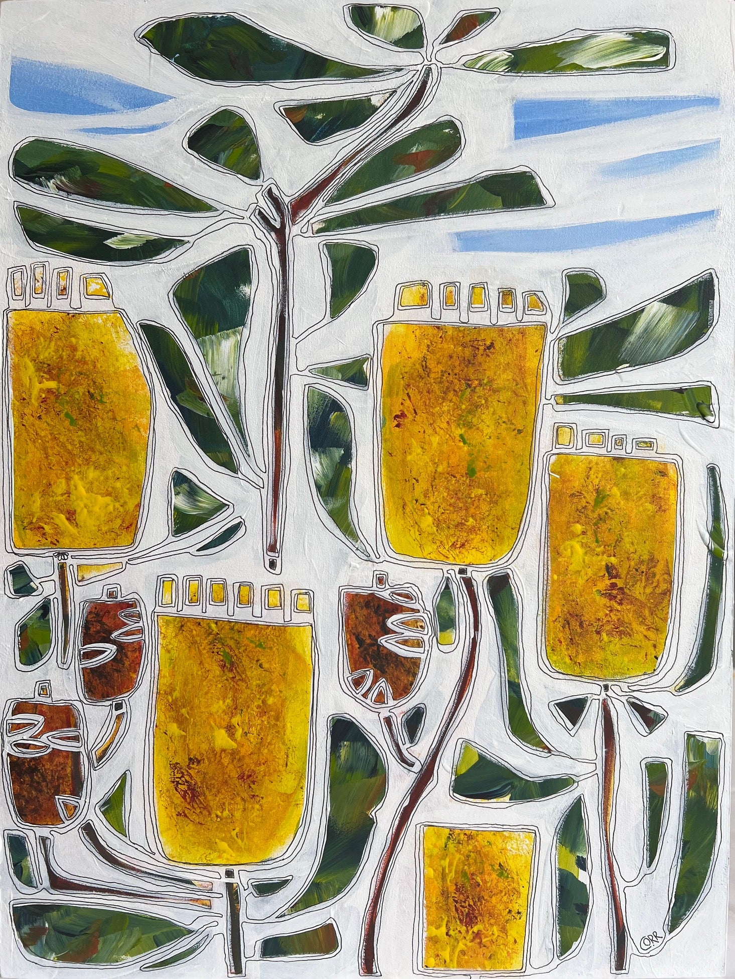 43cm x 33cm. Acrylic on panel, framed in oak.
