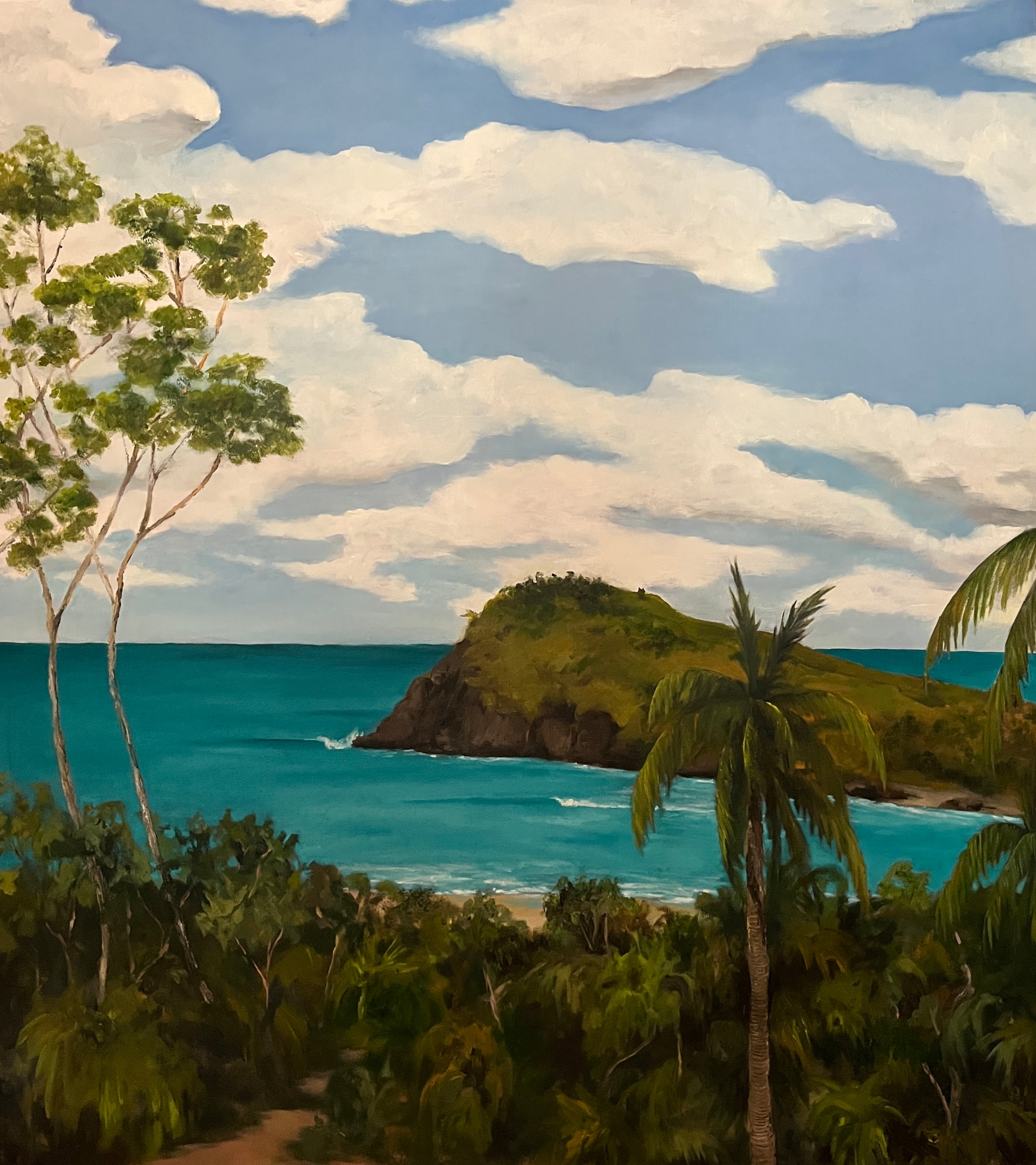 Painted from memory “Day’s Like These” is my idea of paradise. Growing up on the Tweed Coast this was a daily scene on my way for a surf or to check the conditions before a surf.