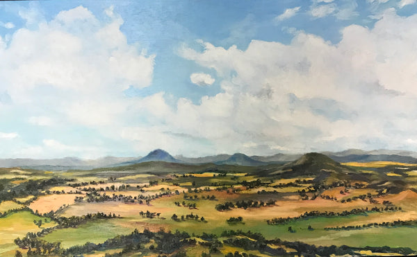 68 x 44cm. Oil on board, framed in black timber.