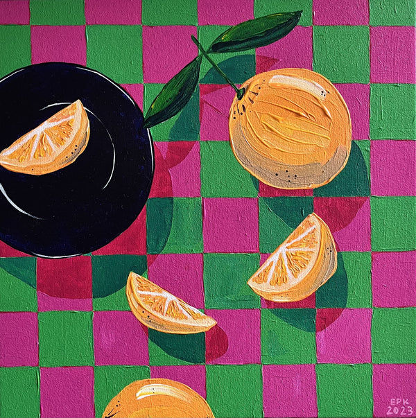 33 x 33cm. Acrylic on canvas, framed in Tasmanian oak.