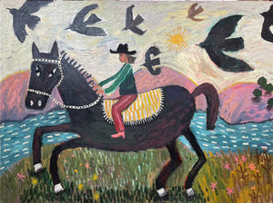 76 x 101 cm Oil on canvas, framed in a Tasmanian Oak float frame.