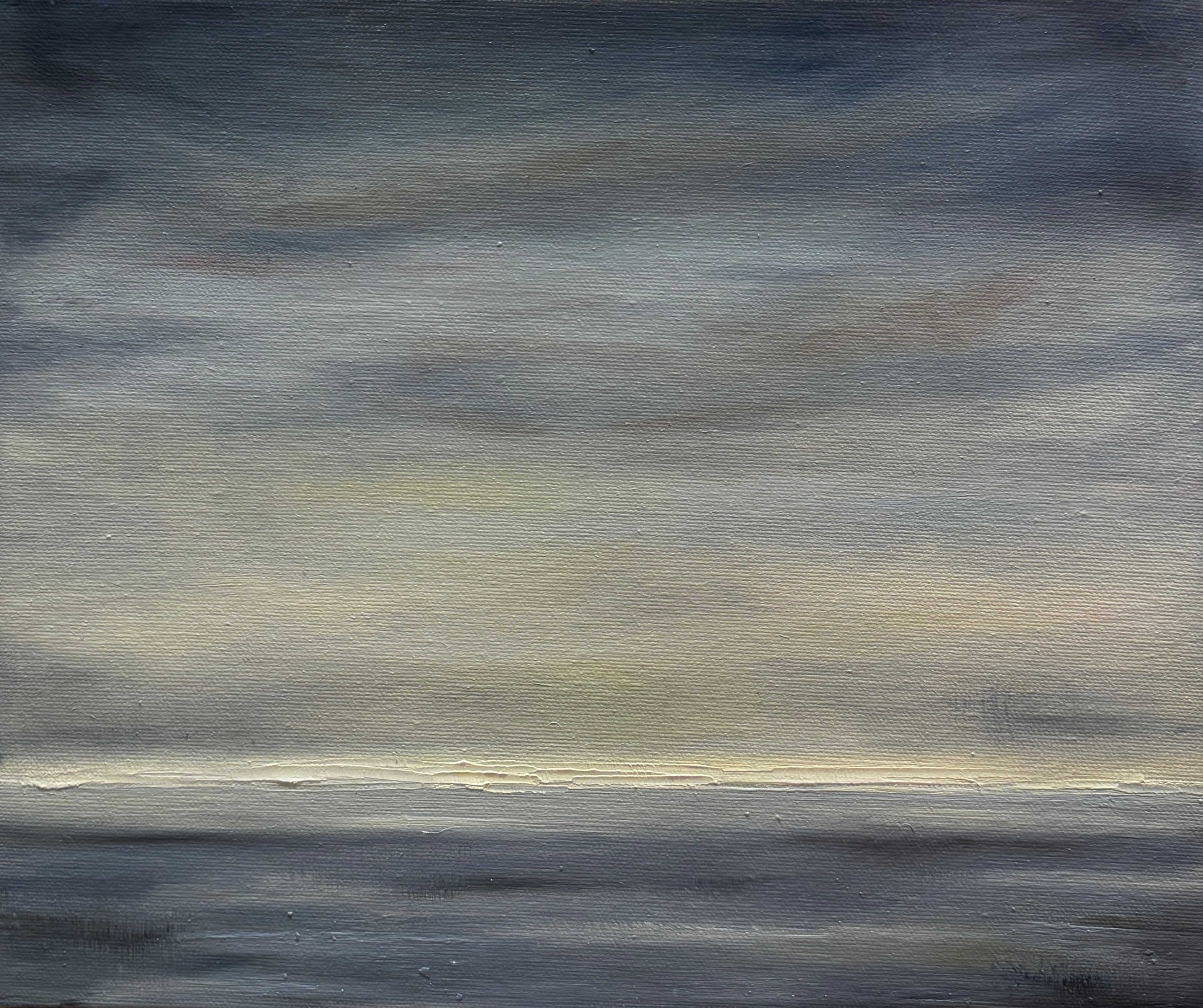 28 x 33cm. Oil on canvas panel, framed in natural Oak.