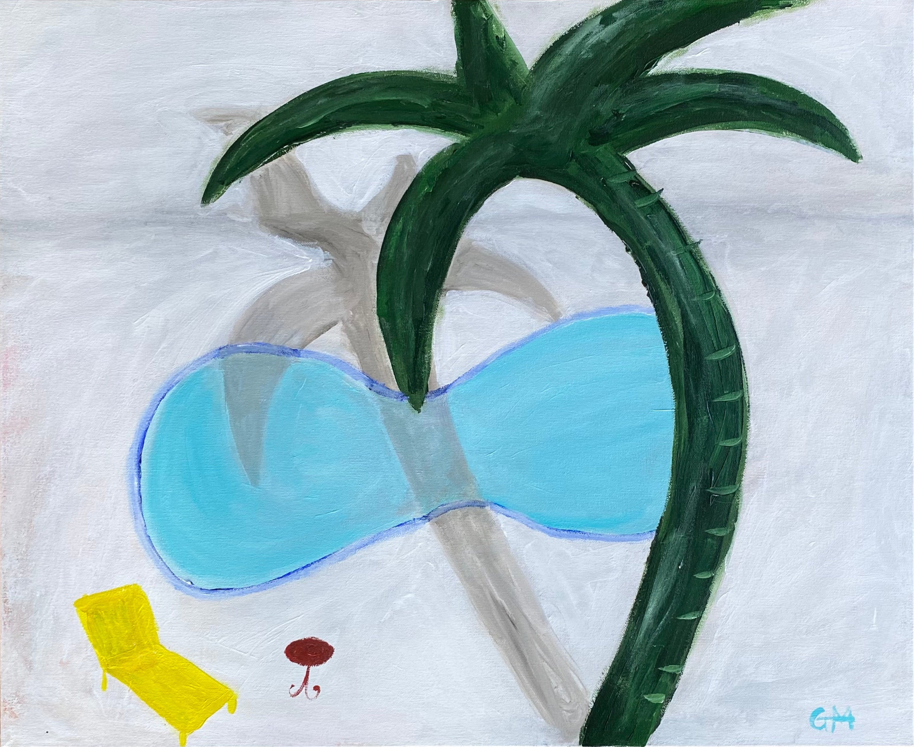 55 x 45cm. Acrylic and gesso on canvas, framed in oak.