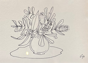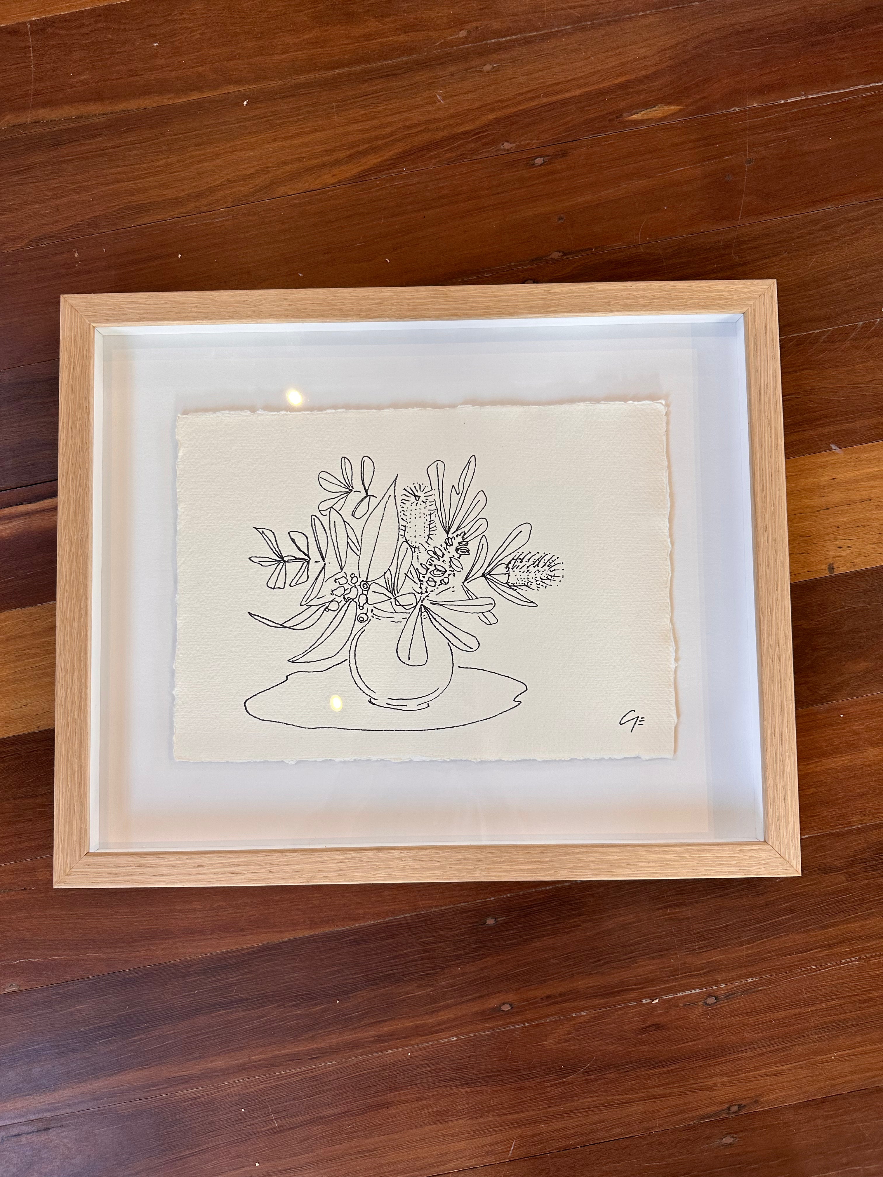 33 x 43cm. Ink on paper, framed in Tasmanian oak.