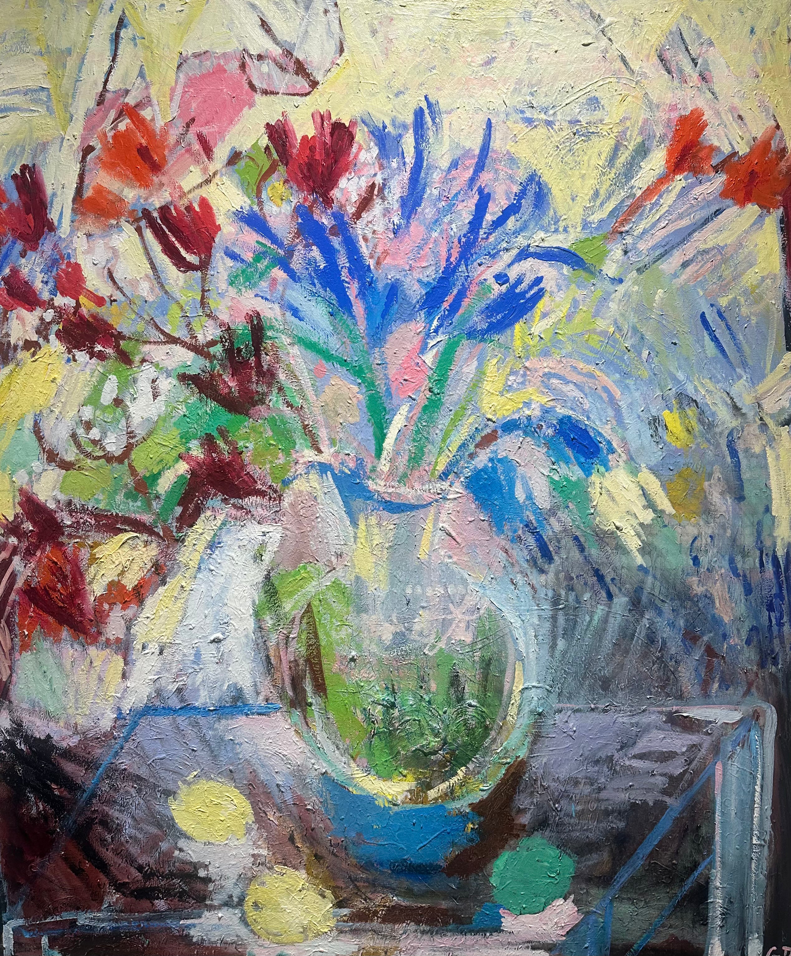102 x 122cm. Oil and acrylic on canvas, framed in oak.