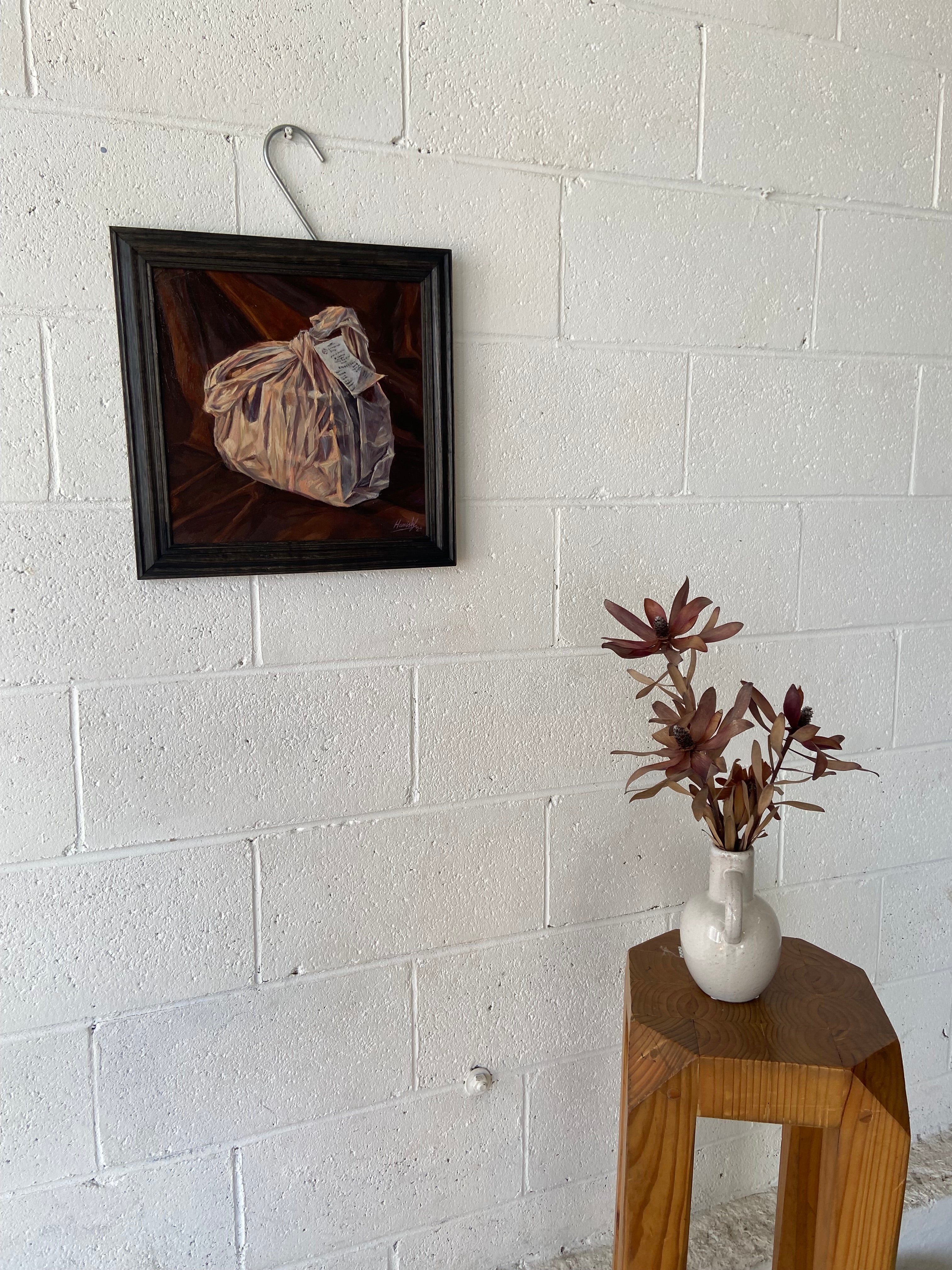 38 x 38cm. Oil on panel, framed in stained oak.