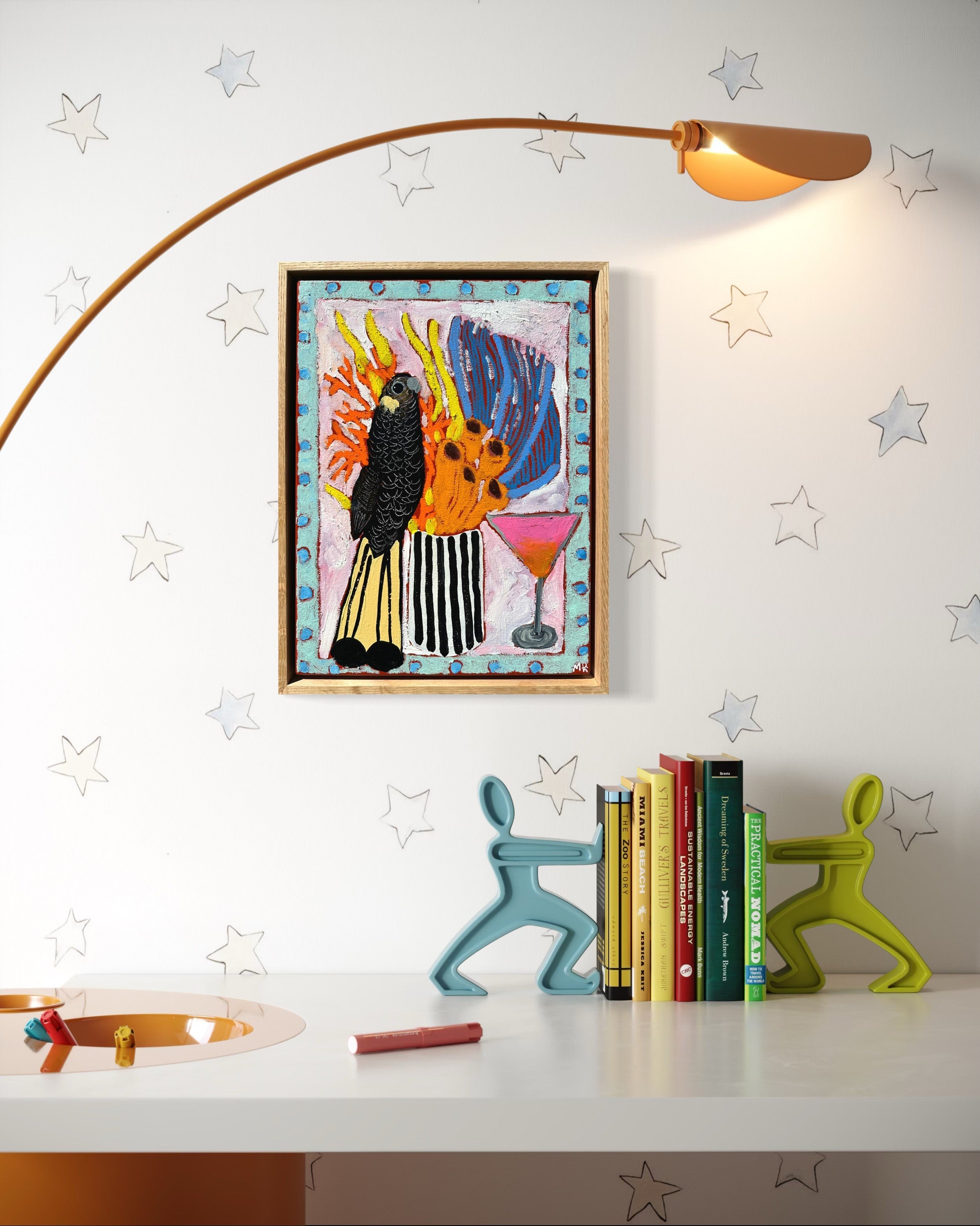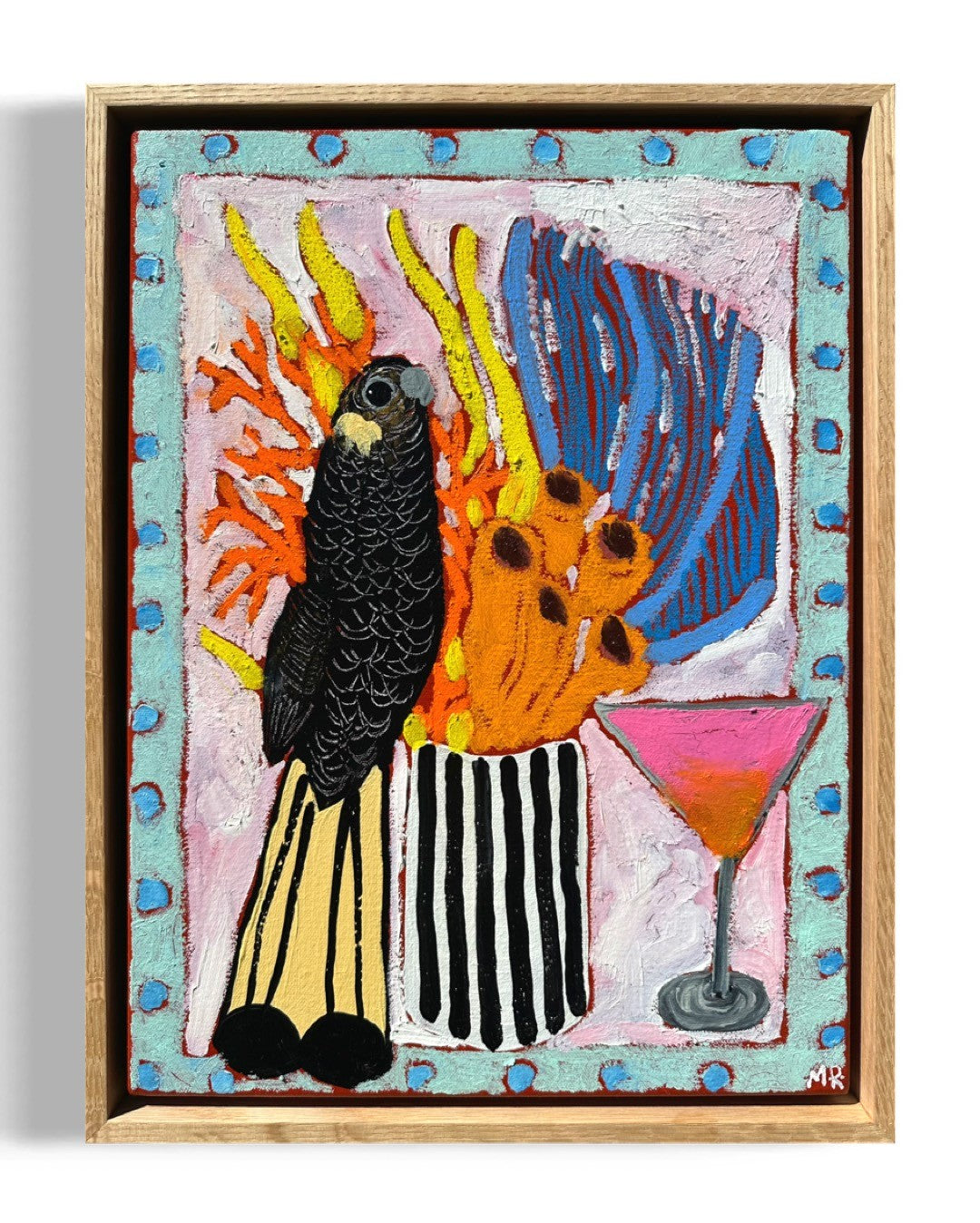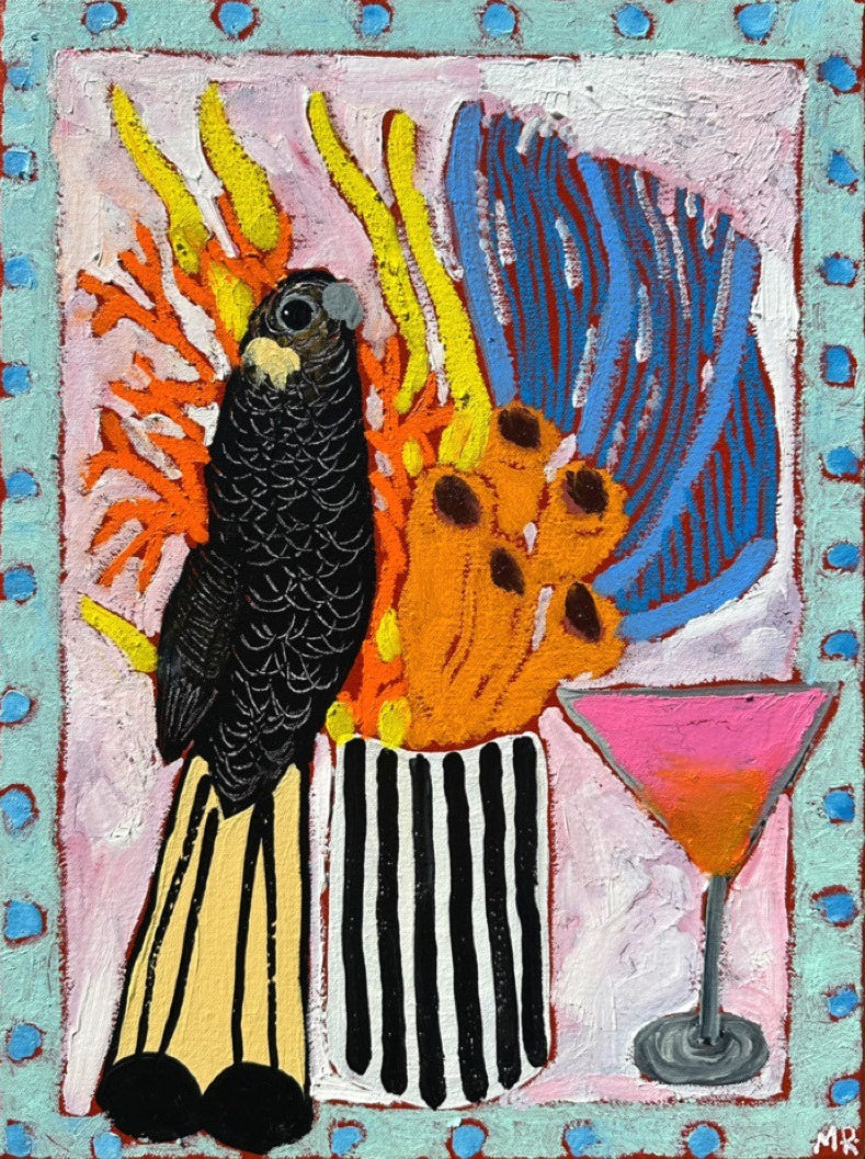 Hannah (aka the Moody Rabbit) paints a range of work from acrylics to oils all with a nostalgic theme featuring her popular Red-Tail Cockatoos. She also makes ceramic pieces in her studio from fun planter pots, vases and mugs to flowers and mushrooms for the garden.