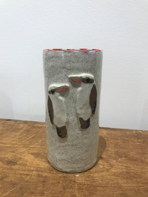 18.5 (H) x 8 (D)cm. Stoneware, white speckle.