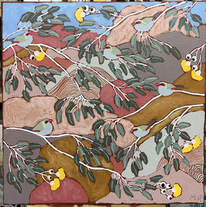 featuring Red-Browed Finches in eucalptus across Australian landscape