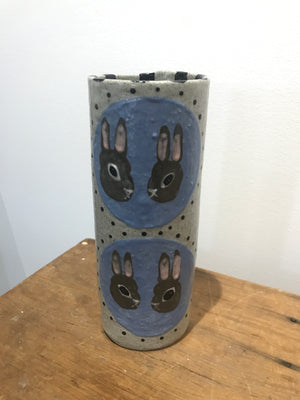 22.5 (H) x 8.5 (D)cm. Stoneware, grey & blue.