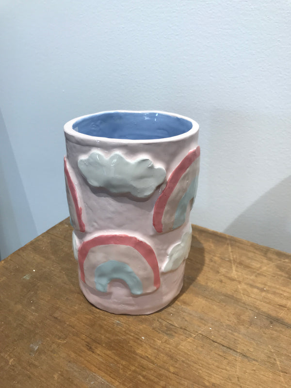 15 (H) x 10 (D)cm. Stoneware, pink.
