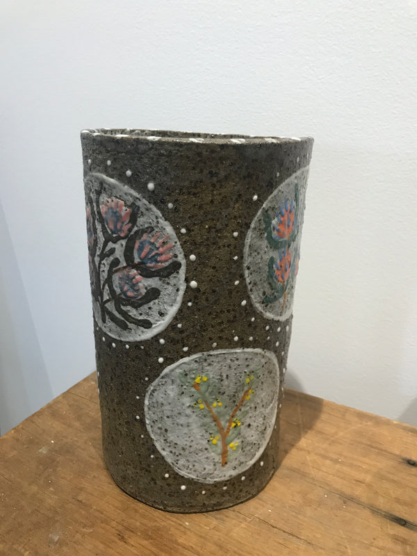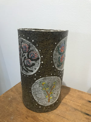 23 (H) x 14 (D)cm. Stoneware, speckle - Australian native plants.