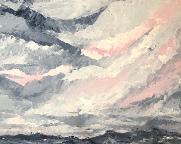 55 x 44cm. Oil on canvas (palette knife), Custom framed in raw Tasmanian oak