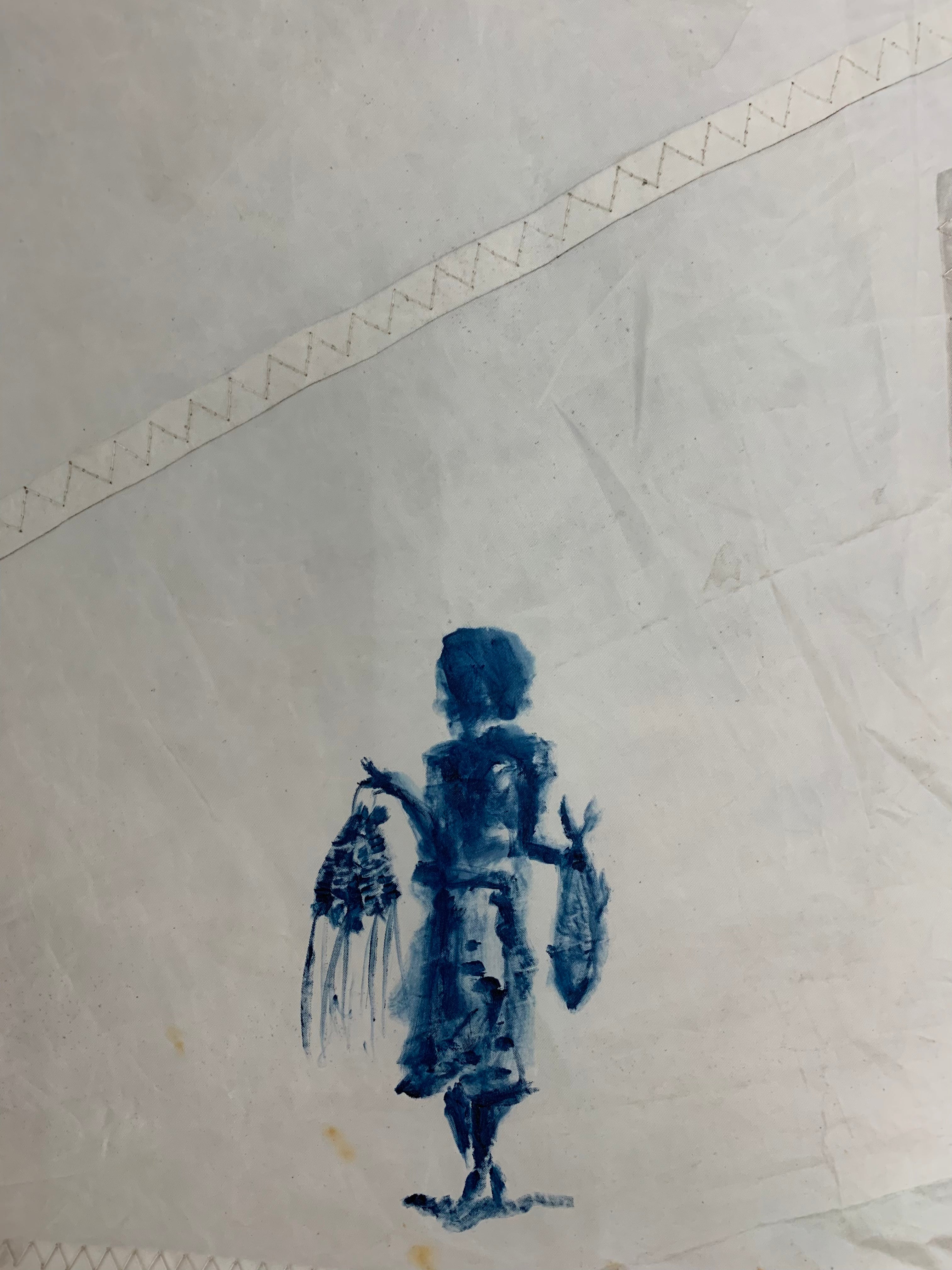 46 x 55cm Acrylic on sail fabric, white timber frame.